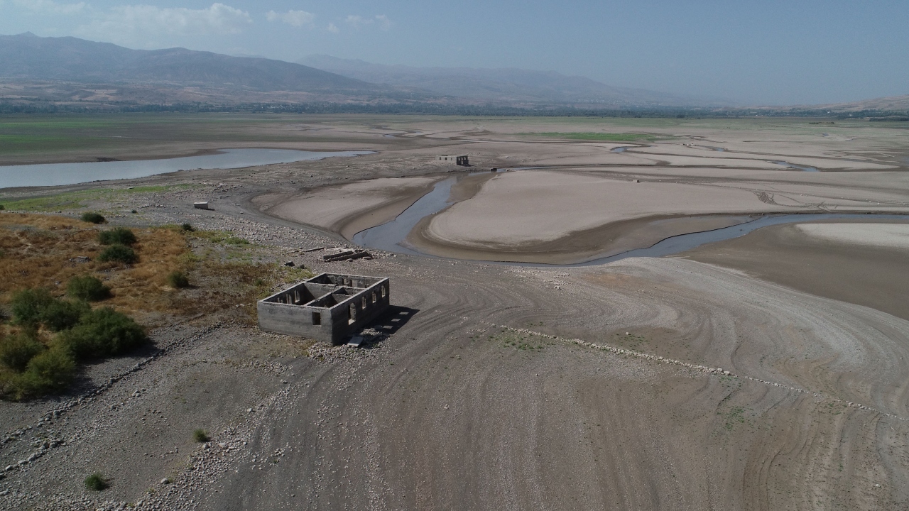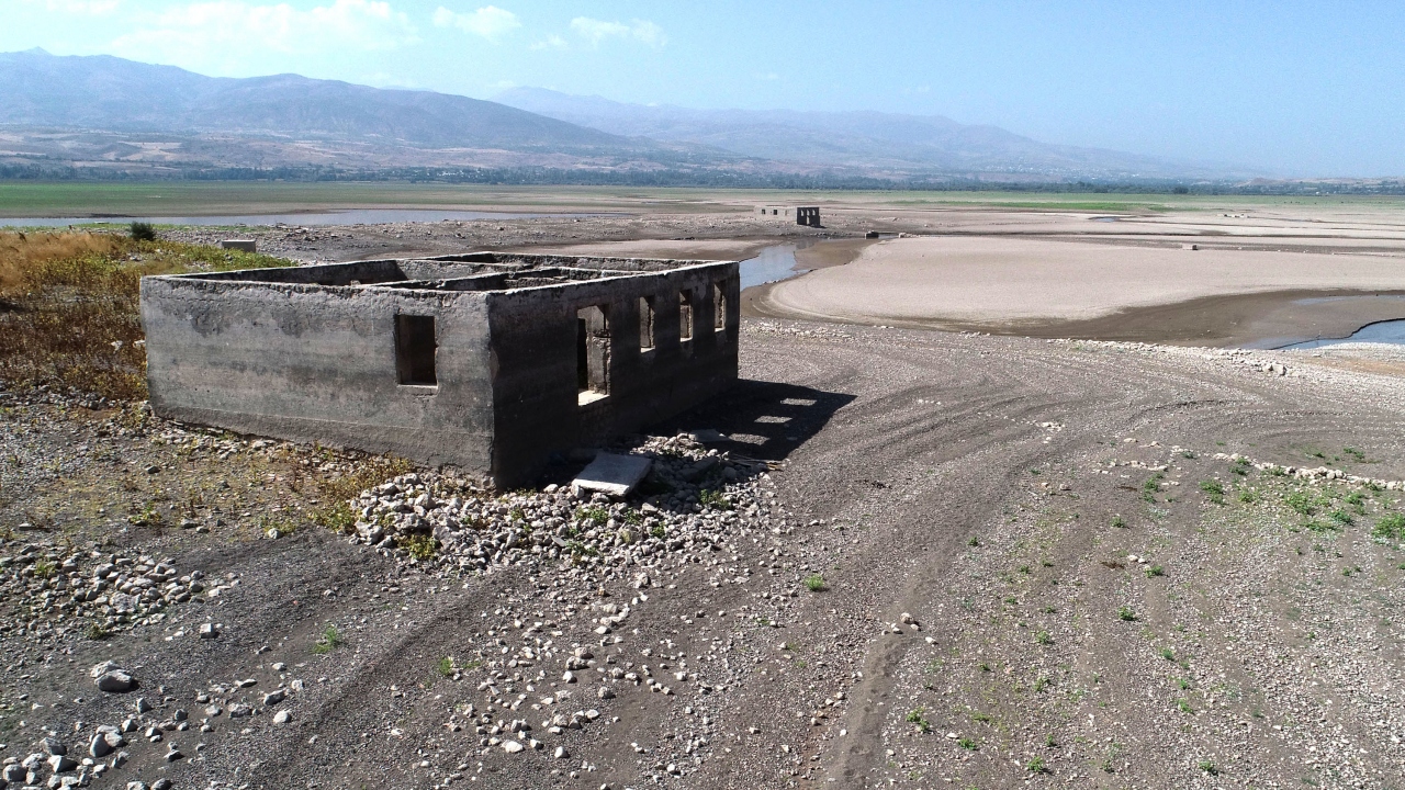 Baraj gölünde sular çekildi, köy kalıntıları gün yüzüne çıktı