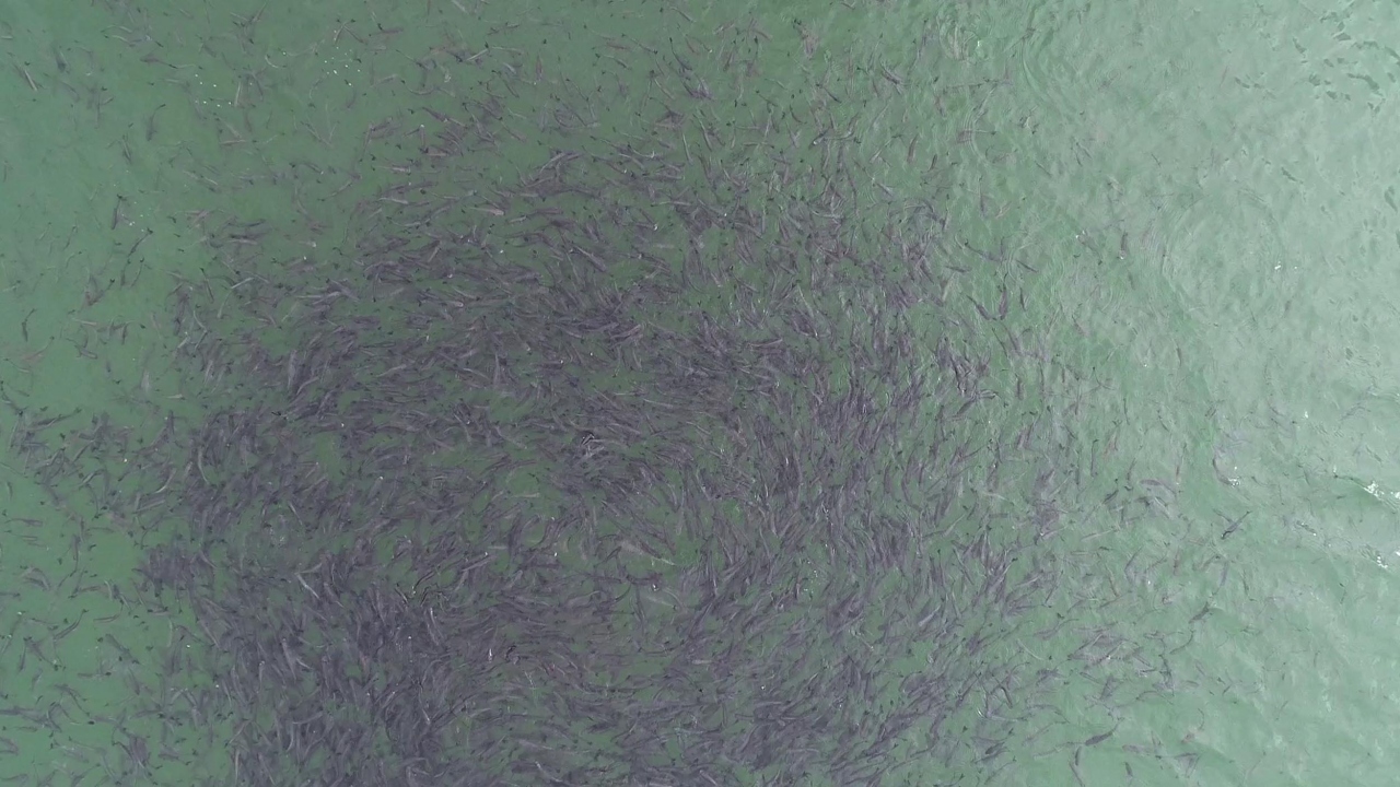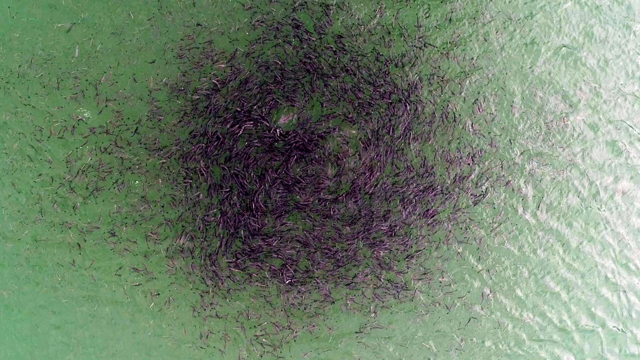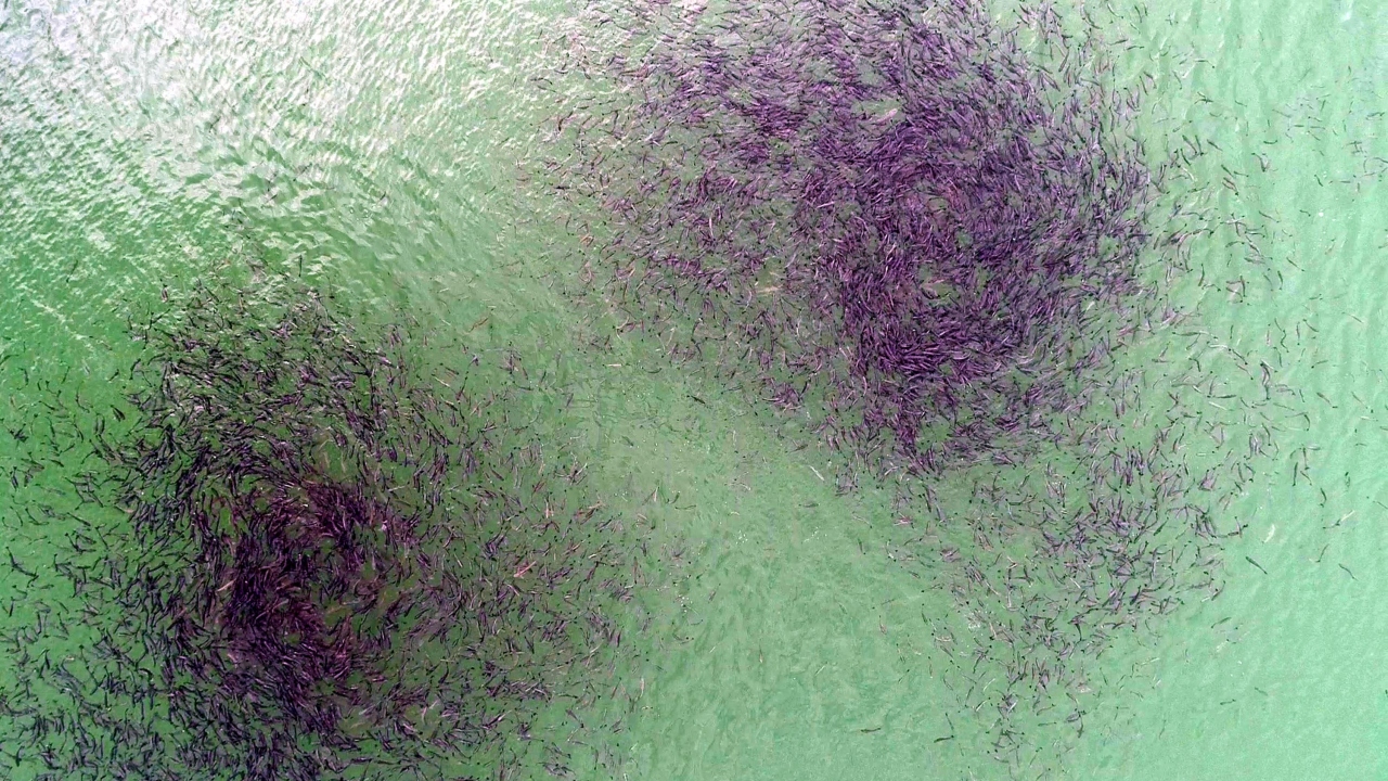 Sularda bir karışım oluyor. Yani sular alt üst oluyor diyebiliriz. Özellikle nehirlerin giriş noktalarında bu karışımlar biraz daha fazla olabiliyor. Sonbaharda özellikle bizim bu bölgemizde gündüz ve gece sıcaklık farkları bariz bir şekilde oluşuyor. Bu da özellikle durgun sularda baraj göllerinde, yüzey sularında lokal lokal keskin sıcaklık değişimlerine sebep olabilir. Bu da özellikle bazı bölgelerde uygun sıcaklık bölgelerde karışımın da etkisiyle zengin bir besin zinciri oluşturabilir. Yani oralarda zengin bir besin madde içeriğiyle birlikte fitoplanktonlar ve onlara bağlı olarak zooplankton gelişimini tetikleyebilir. Dolayısıyla bildiğimiz gibi balıkların hayatı yem aramakla geçer. Beslenmek için yem peşinde koşmakla geçer. Baktığımız zaman topluluk oluşturan balıkların da tamamen beslenme davranışı içerisinde olduğunu görüyoruz. Dolayısıyla bu lokal lokal oluşan uygun ortamlarda sıcaklığa ve karışıma dayalı, bu uygun zengin besin içeriği olan ortamlarda bu balıkların mutlu bir şekilde beslendiklerini görebiliyoruz."