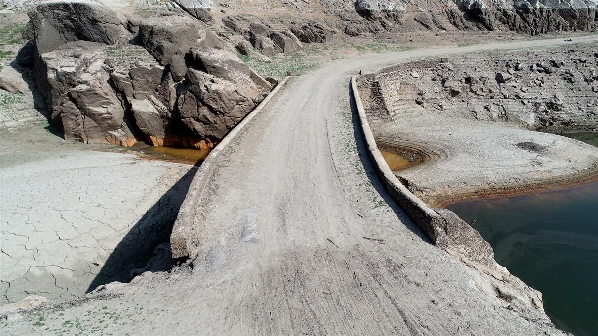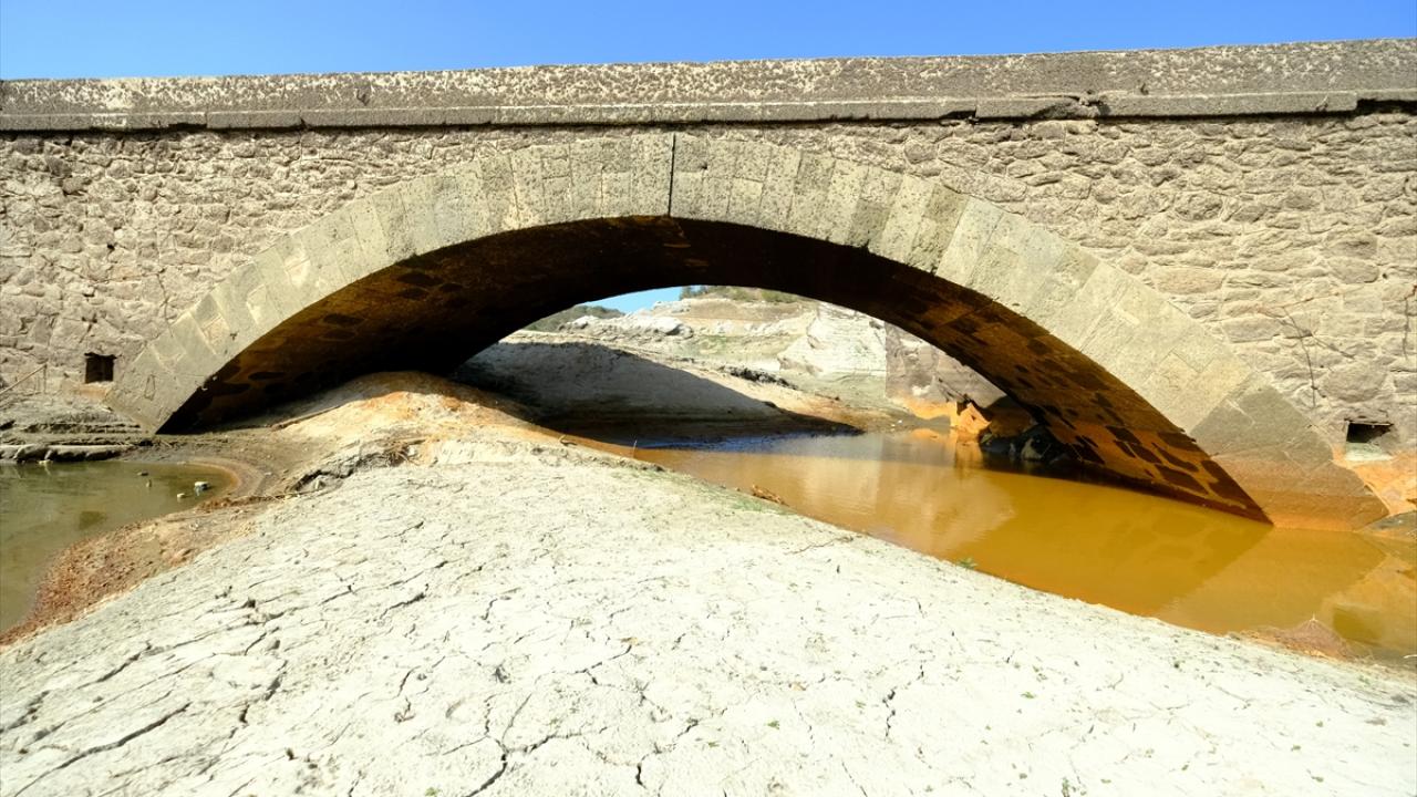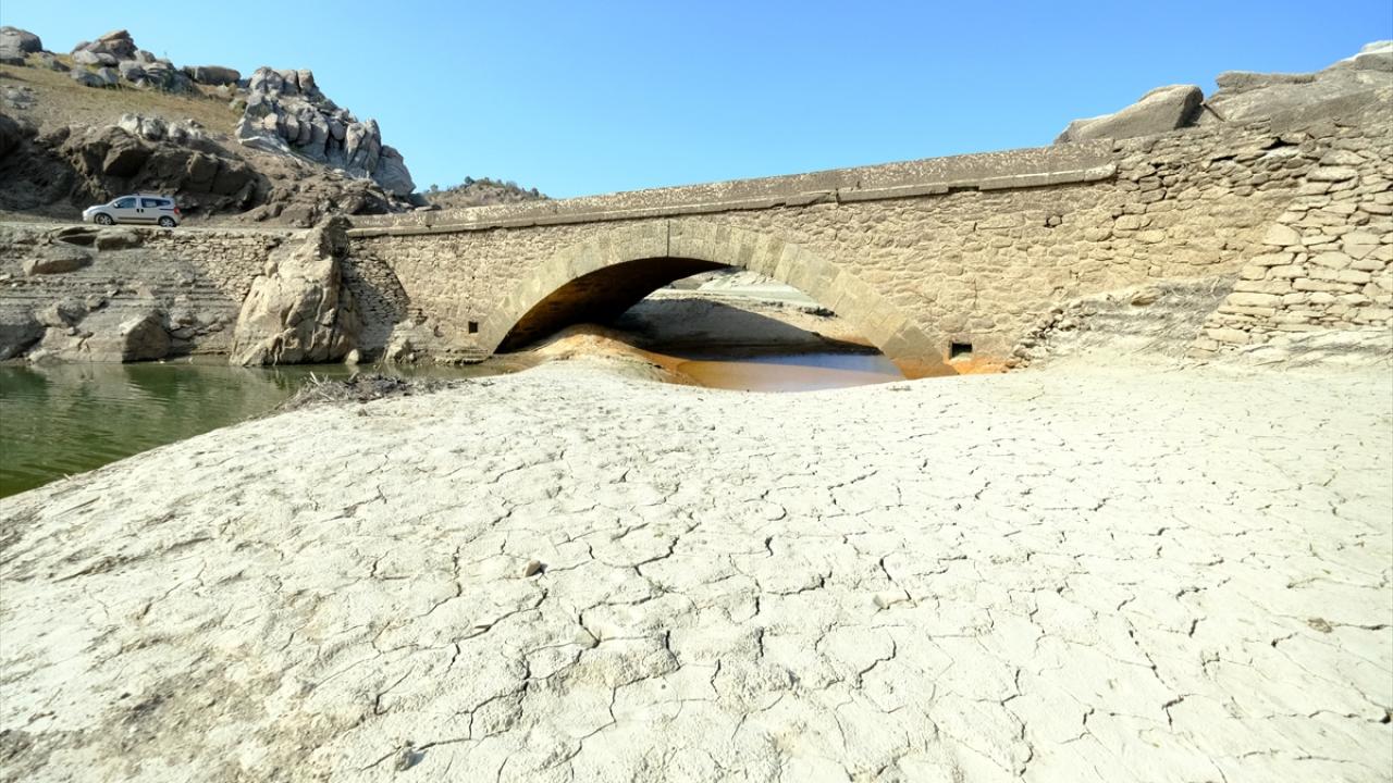 Şebeke suyunun sağlandığı barajın su seviyesinin düşmesiyle 4 yıl önce olduğu gibi köprü yeniden gün yüzüne çıktı.