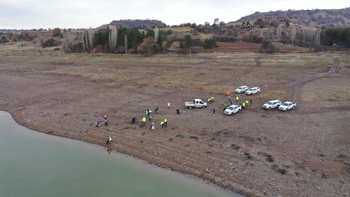 Ankara Büyükşehir Belediyesi Su ve Kanalizasyon İdaresi Genel Müdürlüğü, suların azalmasıyla baraj ve göl kıyılarında ortaya çıkan atık ve çöpleri temizleme çalışması başlattı.