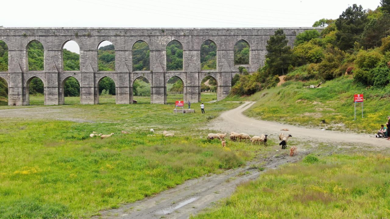 Alibeyköy barajında daha önceden balıkların yüzdüğü alanlar tamamen kururken, artık keçiler ve koyunların otladığı alanlar haline geldi.