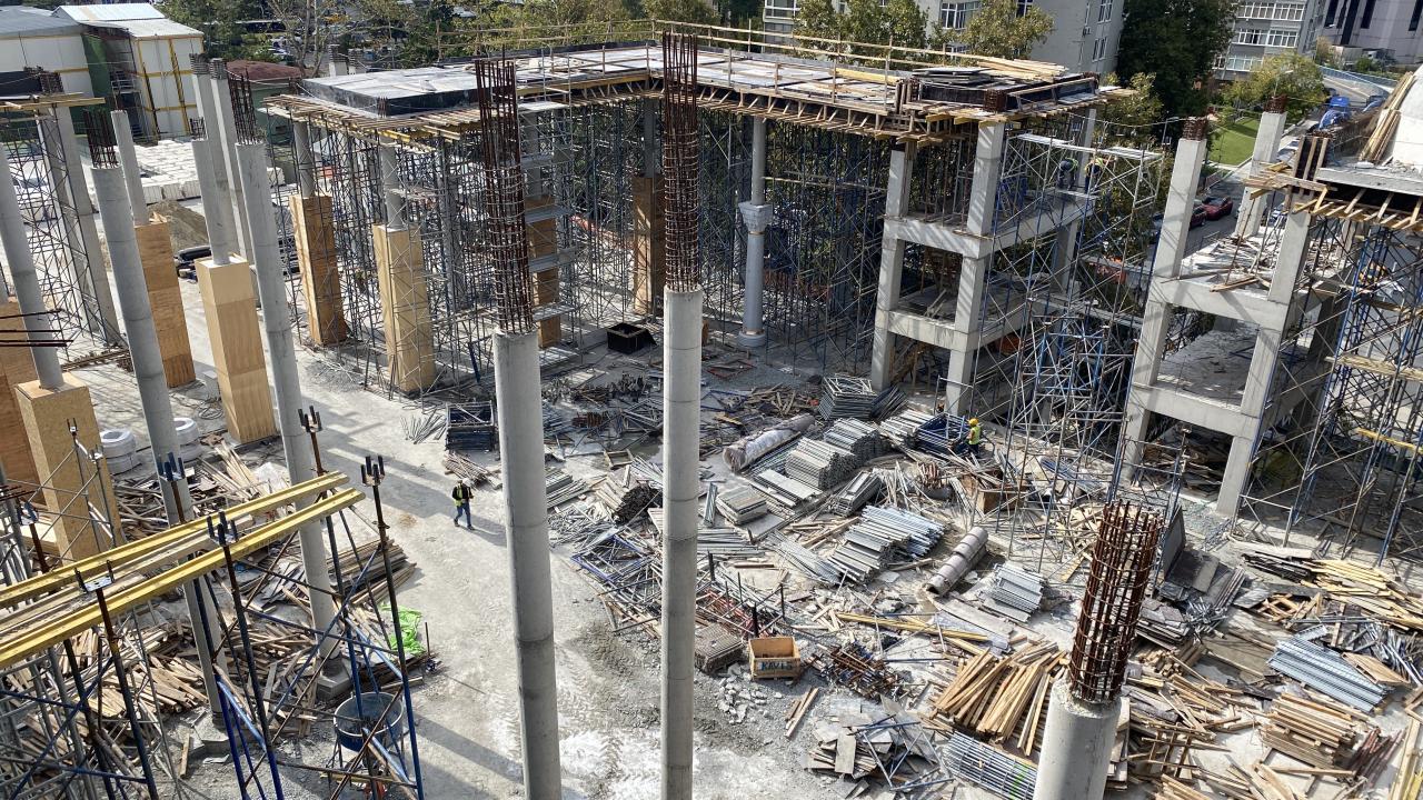 İhale bedeli 159 milyon 738 bin lira olan cami, 7 bin metrekarelik alan üzerinde yükselmeye devam ederken, kapalı ve açık alanlarıyla birlikte toplam 20 bin kişi kapasiteli olacak.