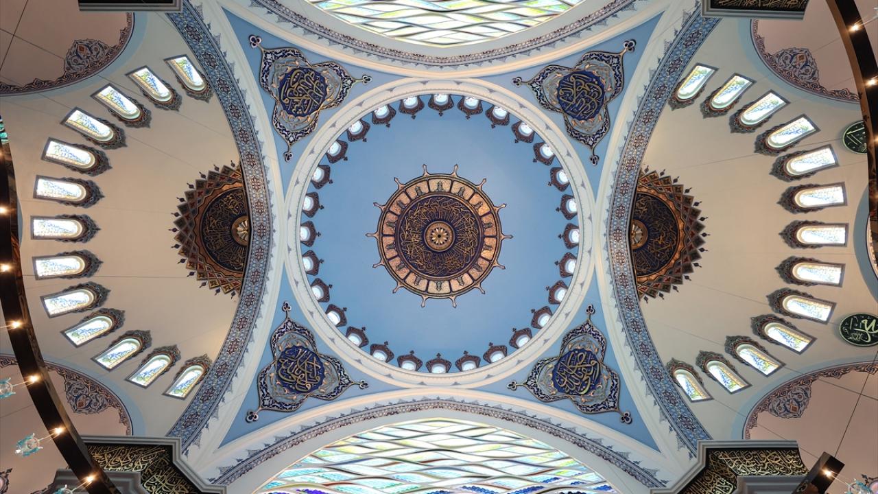 Ana kubbe yazısını çevreleyen desenler gemi dümeni şeklinde yapıldı. Kubbe yazısının tam ortasında 16 köşeli pusula yıldızı yer alıyor. Büyük Çamlıca Camisi`ndeki ana kubbede olduğu gibi nano teknolojinin kullanıldığı camide, masif bakır levhalar ile altın ve gümüş renkli malzemeler yer alıyor.