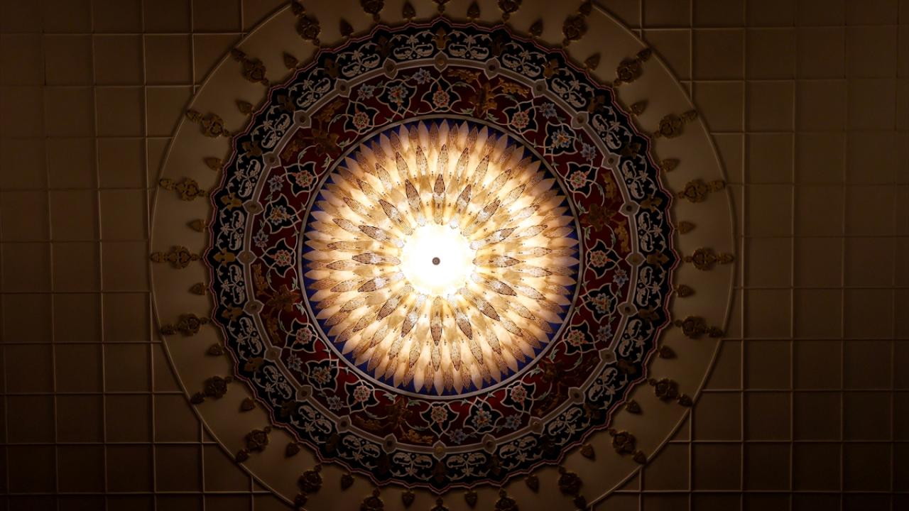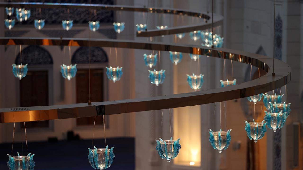 Camiye, Allah`ın isimleri olan Esmaül Hüsna`ya atıfta bulunmak için "dalga" formundaki ana avizeye 99 fanus takıldı. Bu sayede caminin kubbelerindeki tezyinatlar daha görülür hale getirildi.