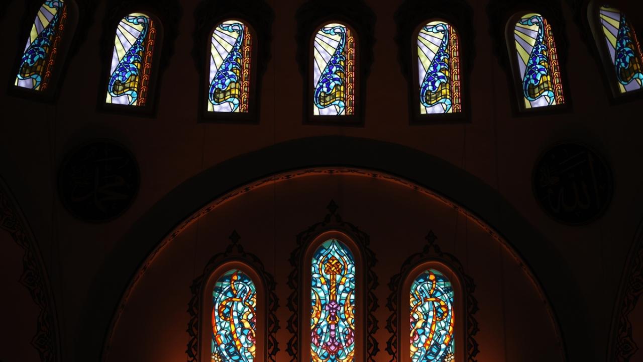 Caminin ana kubbesinin etrafındaki 32 pencerede yelkenli ve mavi vitraylar yer alıyor. Ayrıca caminin minarelerinde martı detayları bulunuyor.