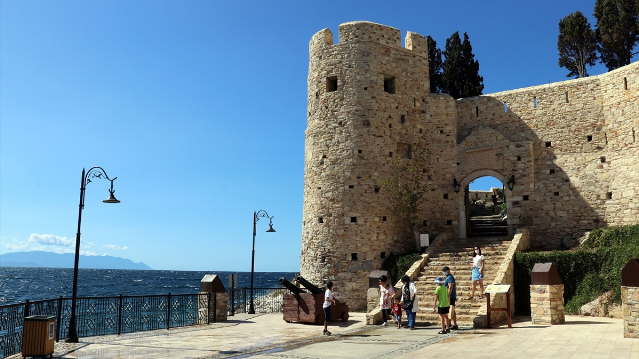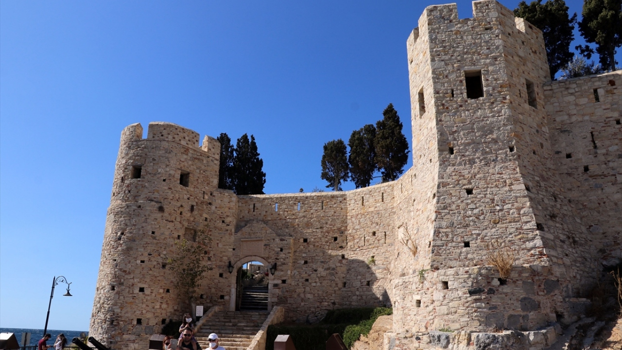 İlyas Ağa tarafından yaptırılan ve adayı tamamen çevreleyen sur ile Barbaros Hayrettin Paşa`nın inşa ettirdiği kale, limana yanaşan dev yolcu gemilerindeki turistleri adeta selamlıyor.