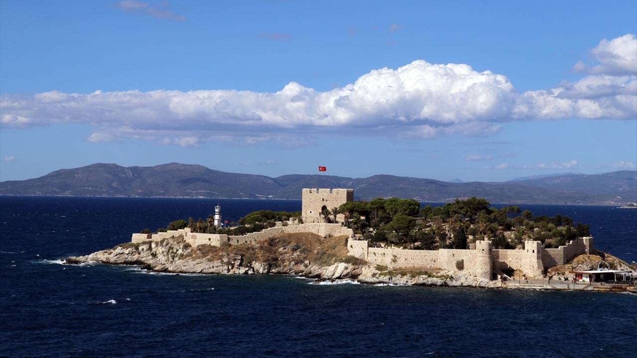 Ege'nin önemli turizm merkezlerinden Aydın'ın Kuşadası ilçesinde bulunan UNESCO Dünya Mirası Geçici Listesi'ndeki tarihi Güvercinada Kalesi, yerli ve yabancı turistlerden ilgi görüyor.