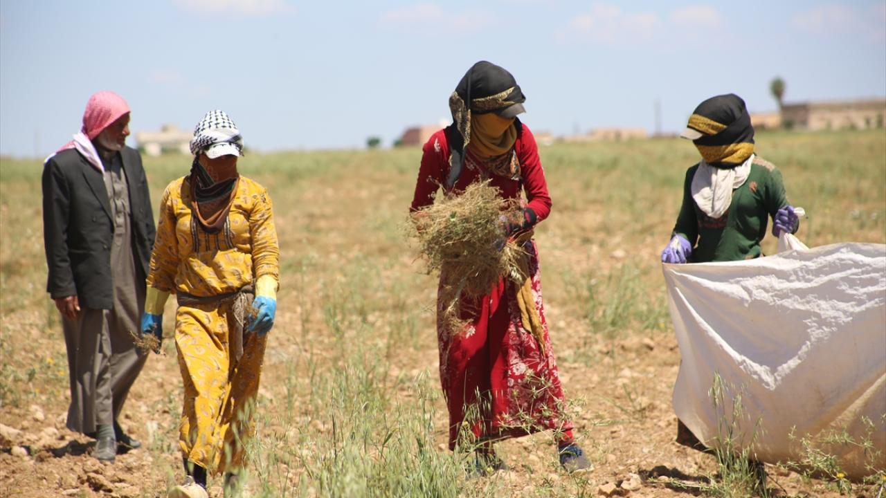 Bakla ve kimyon, terörden arındırılan Tel Abyad ile Rasulayn ilçelerinde hasadına başlanan ilk ürünlerin başında geliyor.