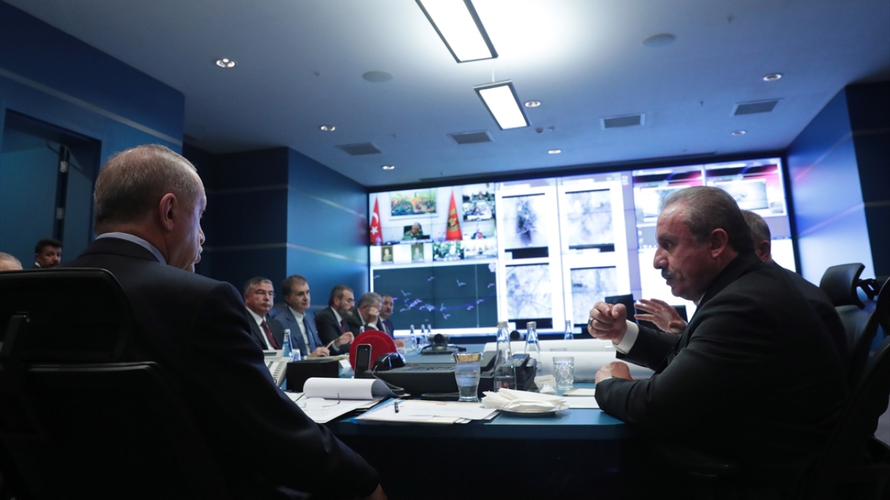 Cumhurbaşkanlığı Külliyesi`ndeki toplantıya, TBMM Başkanı Mustafa Şentop, Adalet Bakanı Abdulhamit Gül, Hazine ve Maliye Bakanı Berat Albayrak, İçişleri Bakanı Süleyman Soylu, Milli Savunma Bakanı Hulusi Akar, TBMM AK Parti Grup Başkanı Naci Bostancı, TBMM Milli Savunma Komisyonu Başkanı İsmet Yılmaz, Genelkurmay Başkanı Orgeneral Yaşar Güler, MİT Başkanı Hakan Fidan, AK Parti Genel Başkanvekili Numan Kurtulmuş, AK Parti Genel Başkan Yardımcıları Hayati Yazıcı, Mahir Ünal, AK Parti Sözcüsü Ömer Çelik, İletişim Başkanı Fahrettin Altun, Cumhurbaşkanlığı Sözcüsü İbrahim Kalın katıldı.