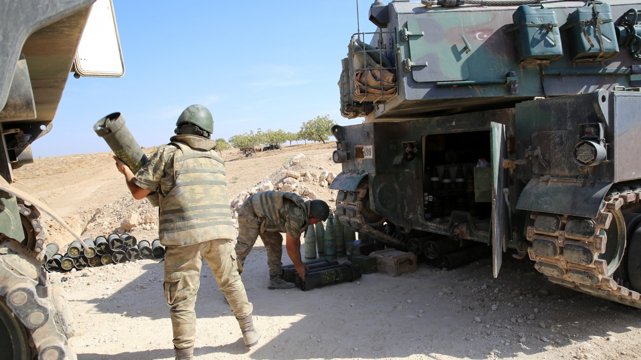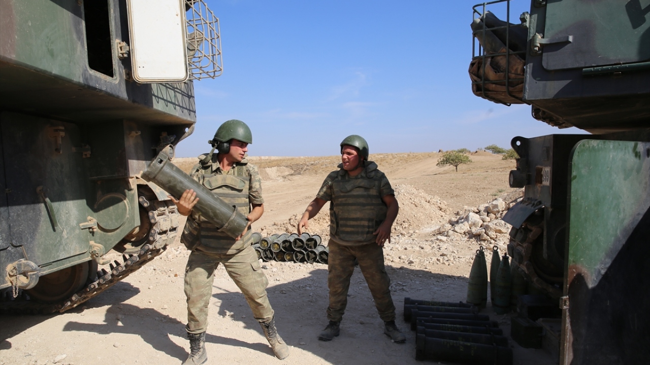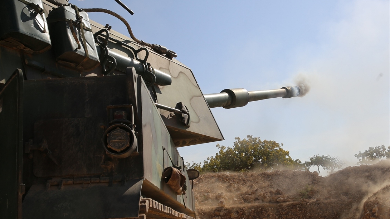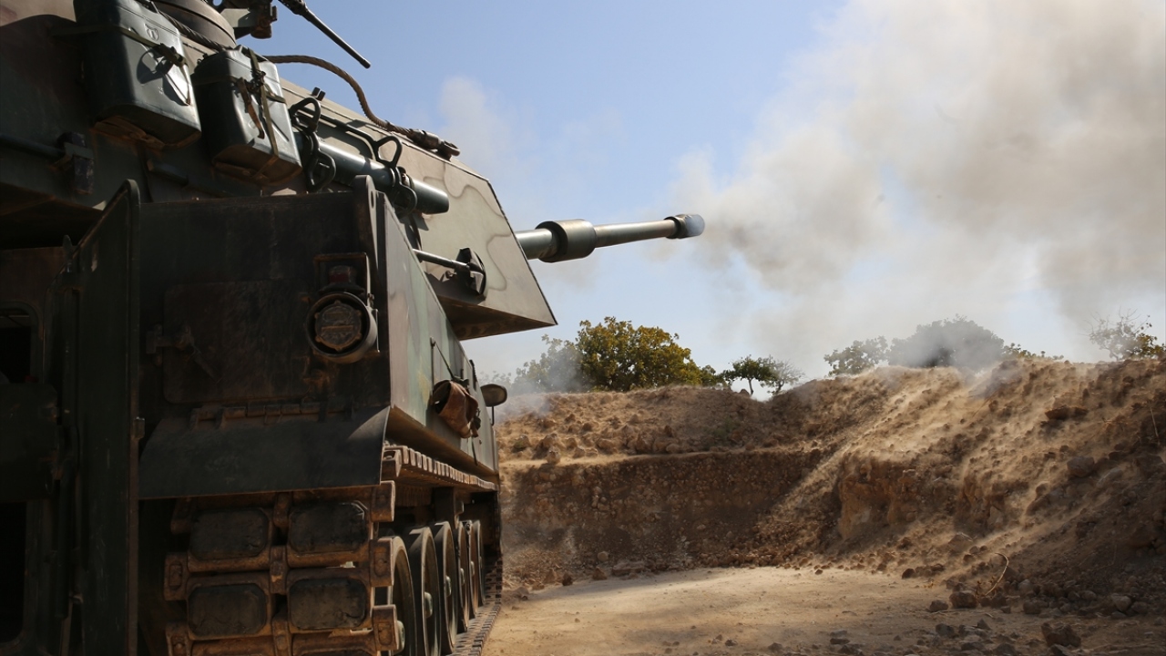 AA ekibinin görüntülediği obüs bataryaları, harekat kapsamında, karadan ilerleyen TSK ve Suriye Milli Ordusuna destek amacıyla, terör unsurlarına bomba yağdırarak, teröristleri etkisiz hale getiriyor.