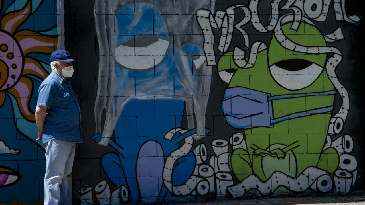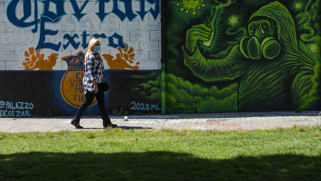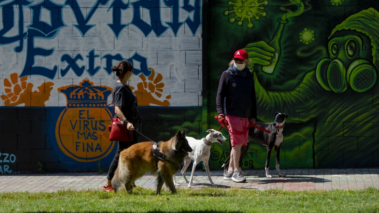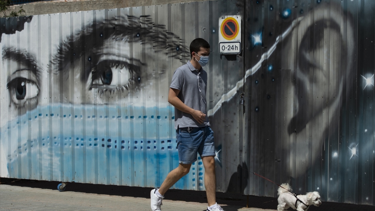 İspanya'nın Barselona kentinde duvarlara koronavirüs (Covid-19) salgınına dikkat çekmek amacıyla grafitiler çizildi.
