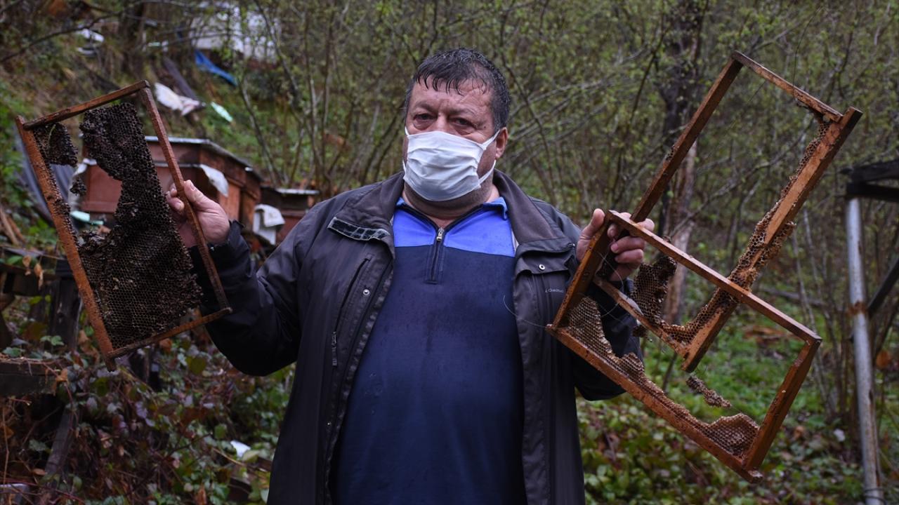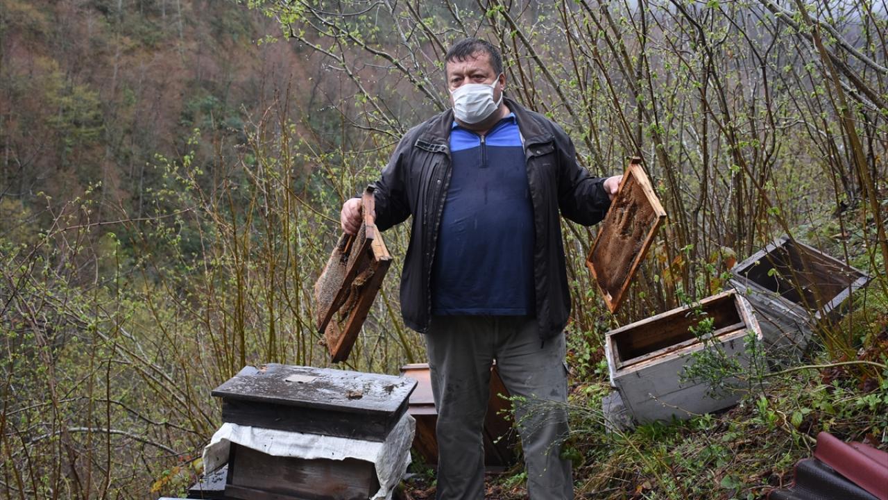 Gördüğü manzara karşısında büyük şaşkınlık yaşadığını anlatan Özdemir, "Kuşnalı mevkisinde bulunan 30 arı kovanımdan 29`u zarar görmüş. Kovanların bulunduğu yerde elektrikli telimiz vardı ama kar yağışı sırasında zarar görmüş. İki gündür hava muhalefetinden dolayı bahçemize gelememiştik. Kontrol için geldiğimizde ise böyle bir manzarayla karşılaştık, şaşırdık kaldık. Daha önce 1-2 kovanımız zarar görmüştü ama bu yaşıma kadar böyle bir şey yaşamadım. Ayılar, kovanların kapağını açarak, petekleri yemiş, arıları telef etmiş. Burada en az 15-20 bin lira zararım var." diye konuştu.