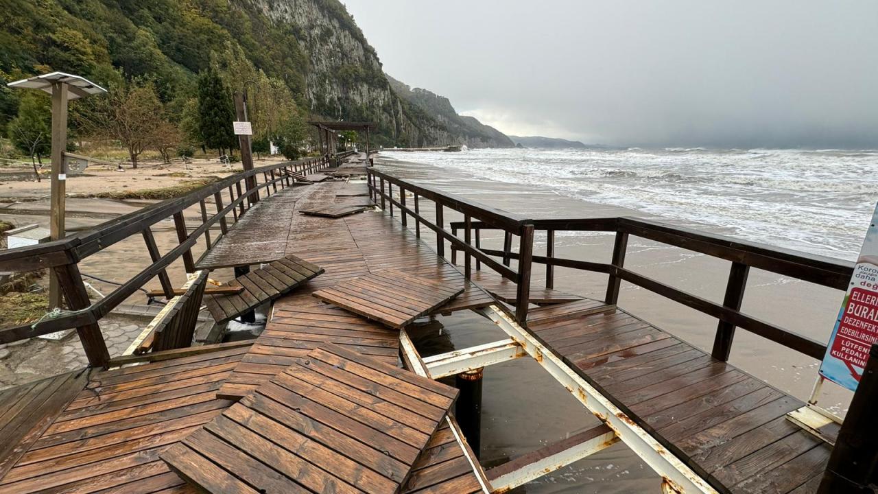 Bartın’da dalgalar nedeniyle yürüyüş yolu ve büfeler zarar gördü