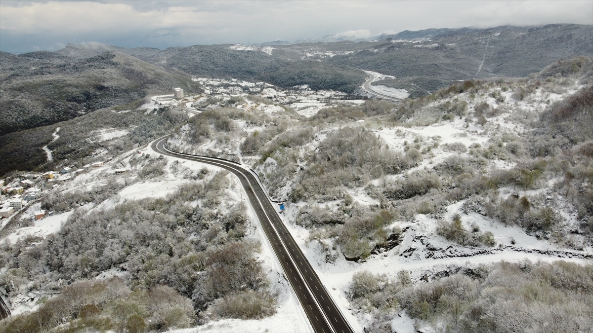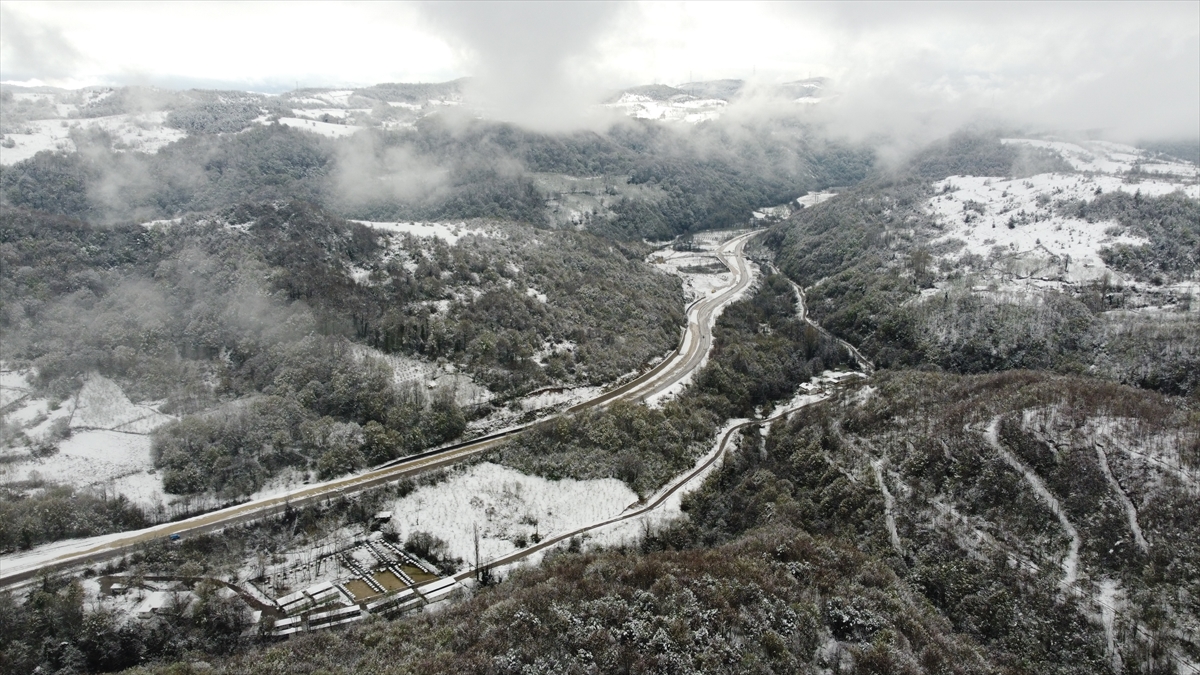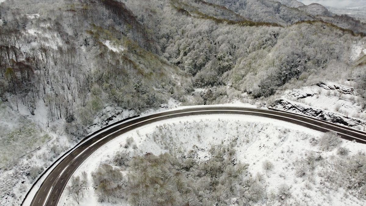 Bartın-Kurucaşile-Cide Ormanları da karla kaplandı. Bölgedeki manzara dronla görüntülendi.