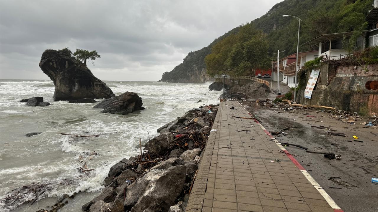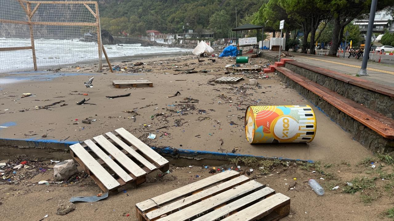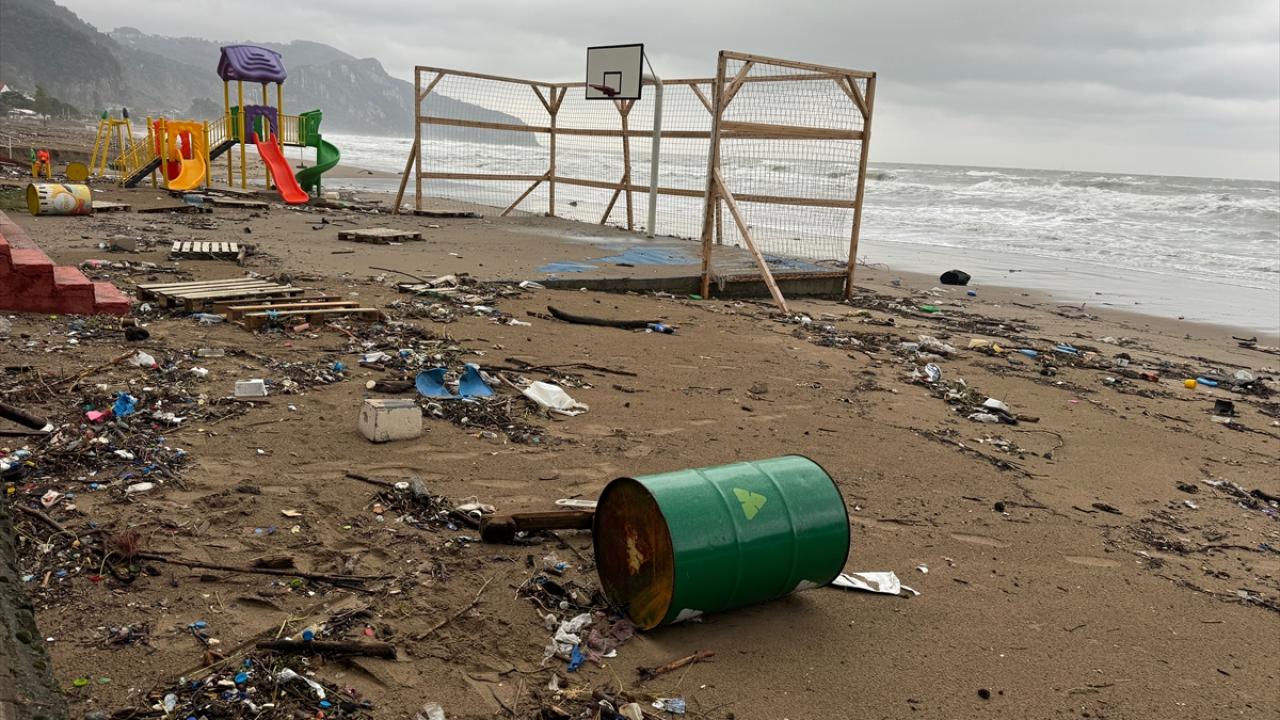 Sahildeki işletmelere ait masa olarak kullanılan fıçıların da kumsala sürüklendiği beldede, bazı banklarda ve çocuk oyun parklarında da hasar oluştuğu görüldü.