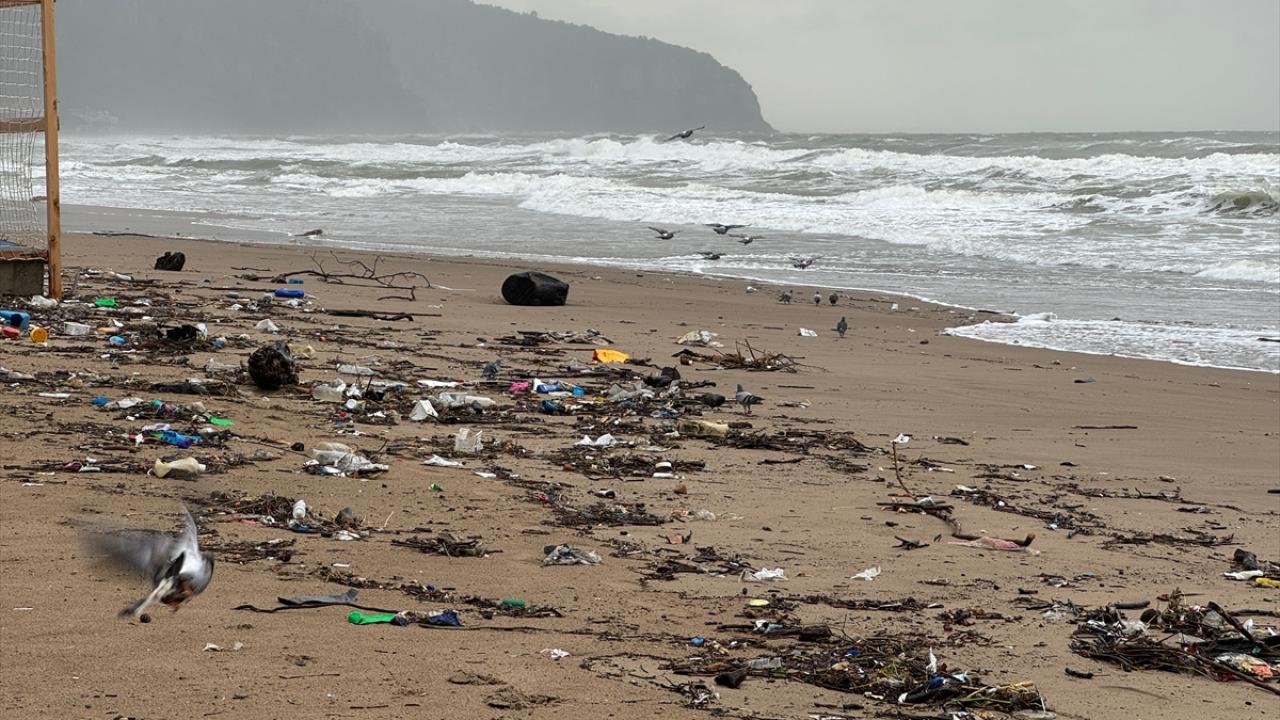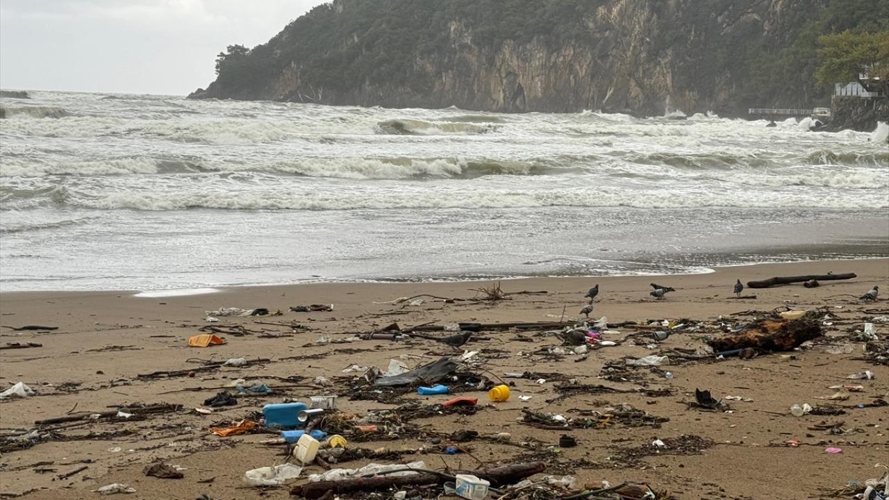 Dalgaların da etkisiyle 3 kilometrelik İnkumu sahil şeridine taşınan atıklar, kirliliğe yol açtı.