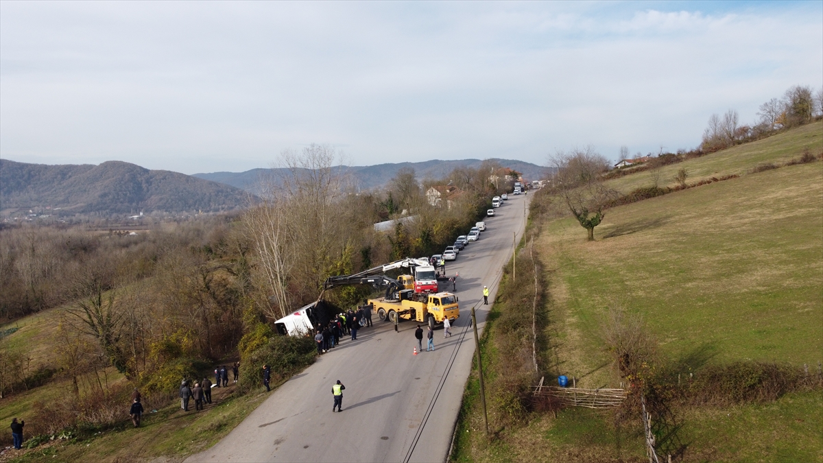 Arslan, burada gazetecilere, Rize`den Zonguldak`ın Ereğli ilçesi istikametine giden bir yolcu otobüsünün henüz belirlenemeyen nedenle devrildiğini söyledi.