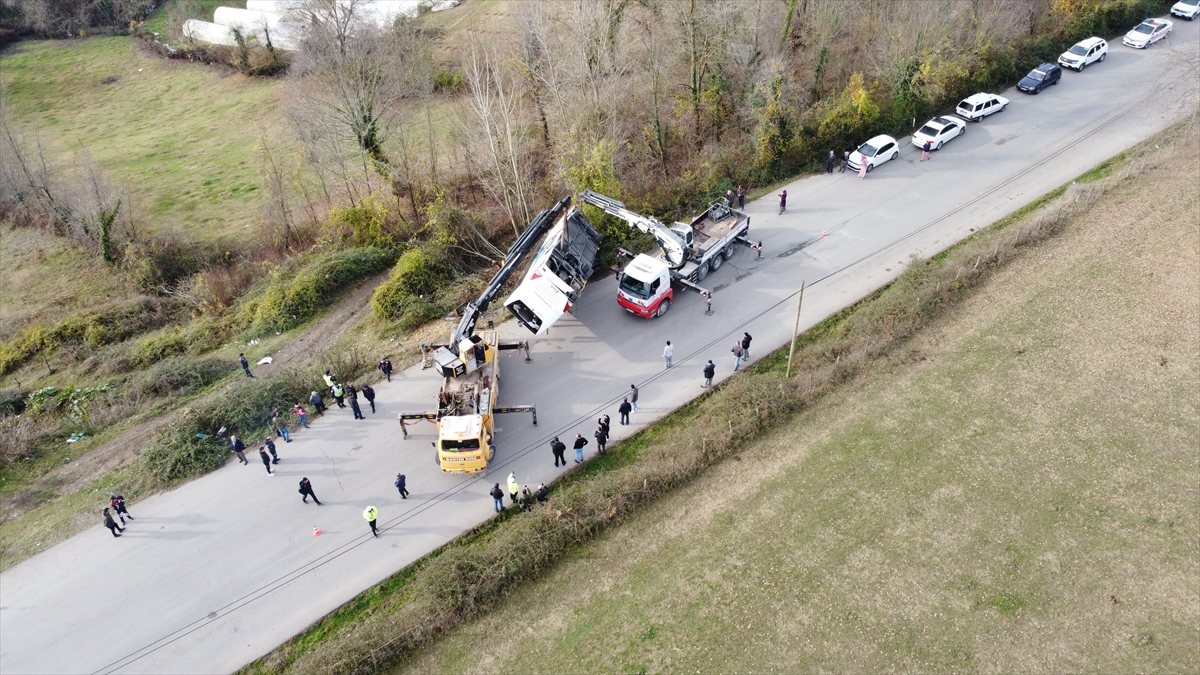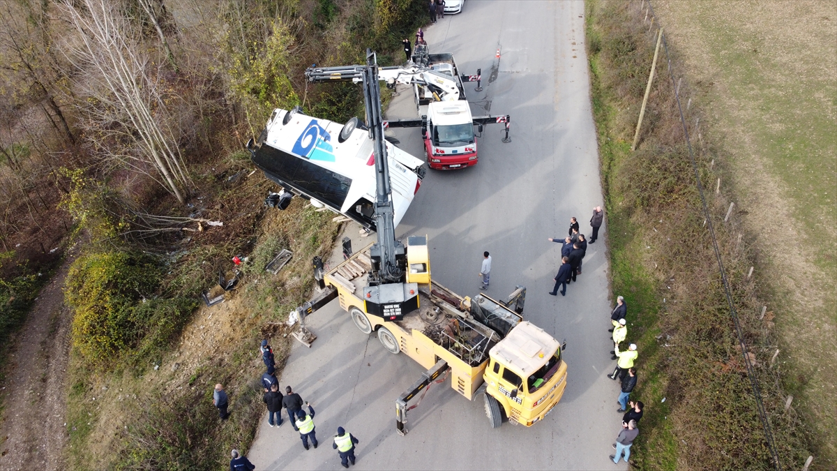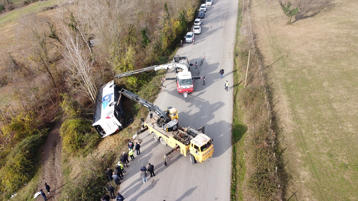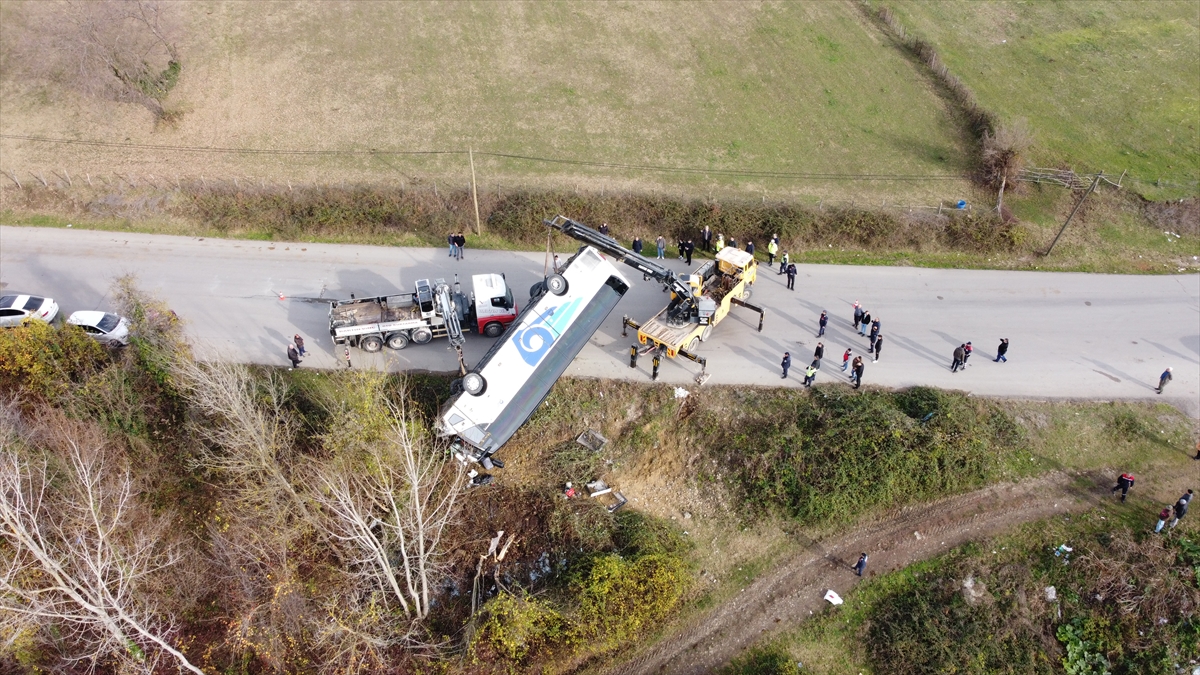 Öte yandan otobüs vinç yardımıyla kaza yerinden kaldırılırken, bir süre trafiğe kapatılan yol yeniden ulaşıma açıldı.