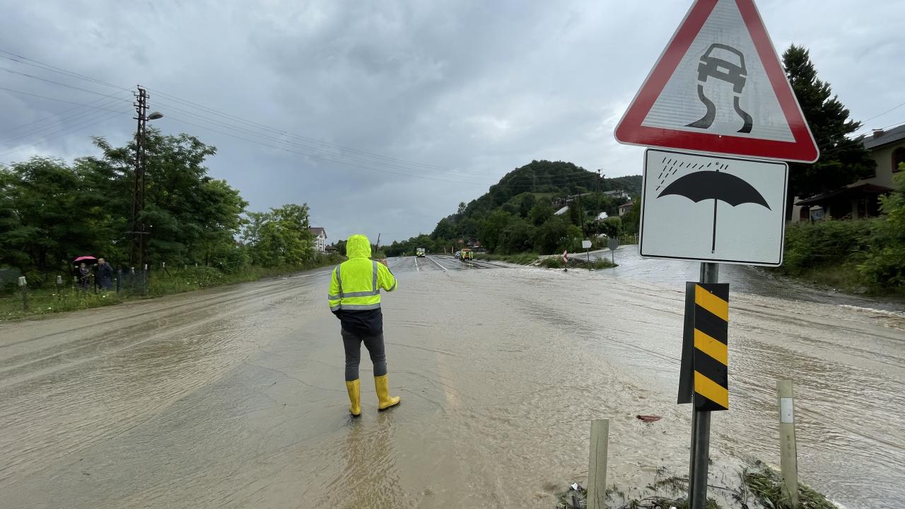 Bartın-Karabük karayolu Potbaşı ve Muratbey köyü mevkiinde de su birikintileri nedeniyle ulaşım tek şeritten sağlanıyor.