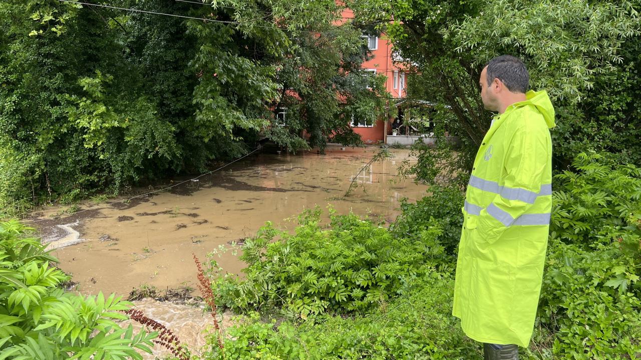 Trafik ekiplerinin önlem aldığı bölgede, bazı evlerin giriş katlarını da su bastı.