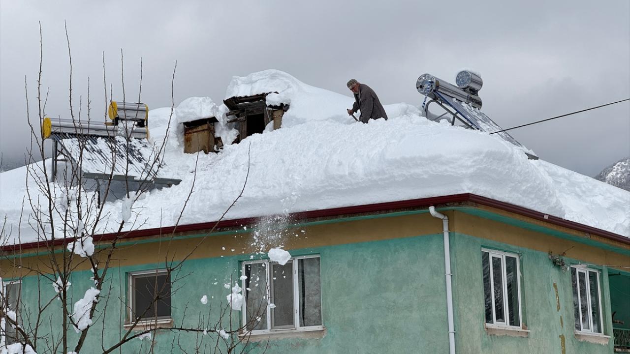 Esbey köyünde yaşayanlar, çökme ihtimaline karşı çatılarda biriken karı temizlerken, bazıları da evlerinden güçlükle çıkabiliyor.