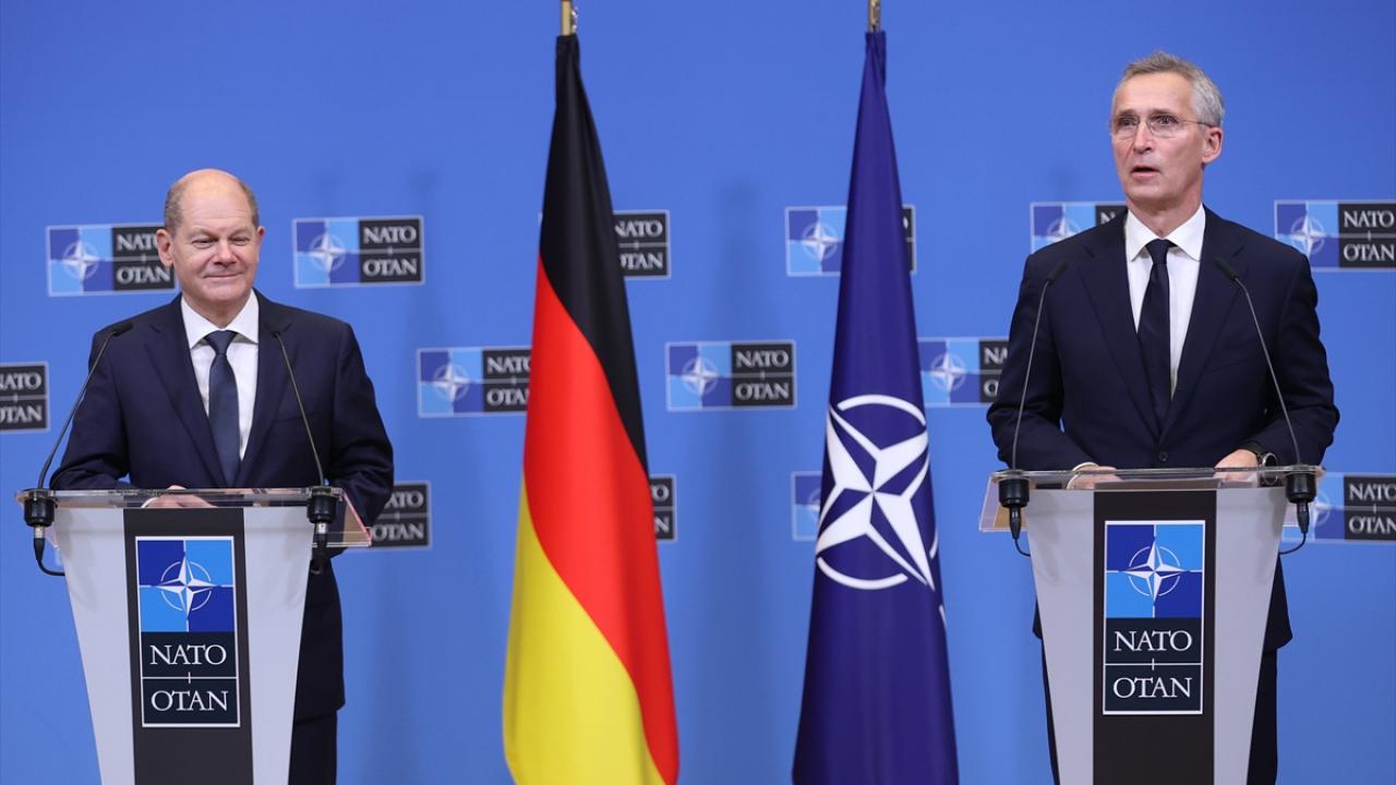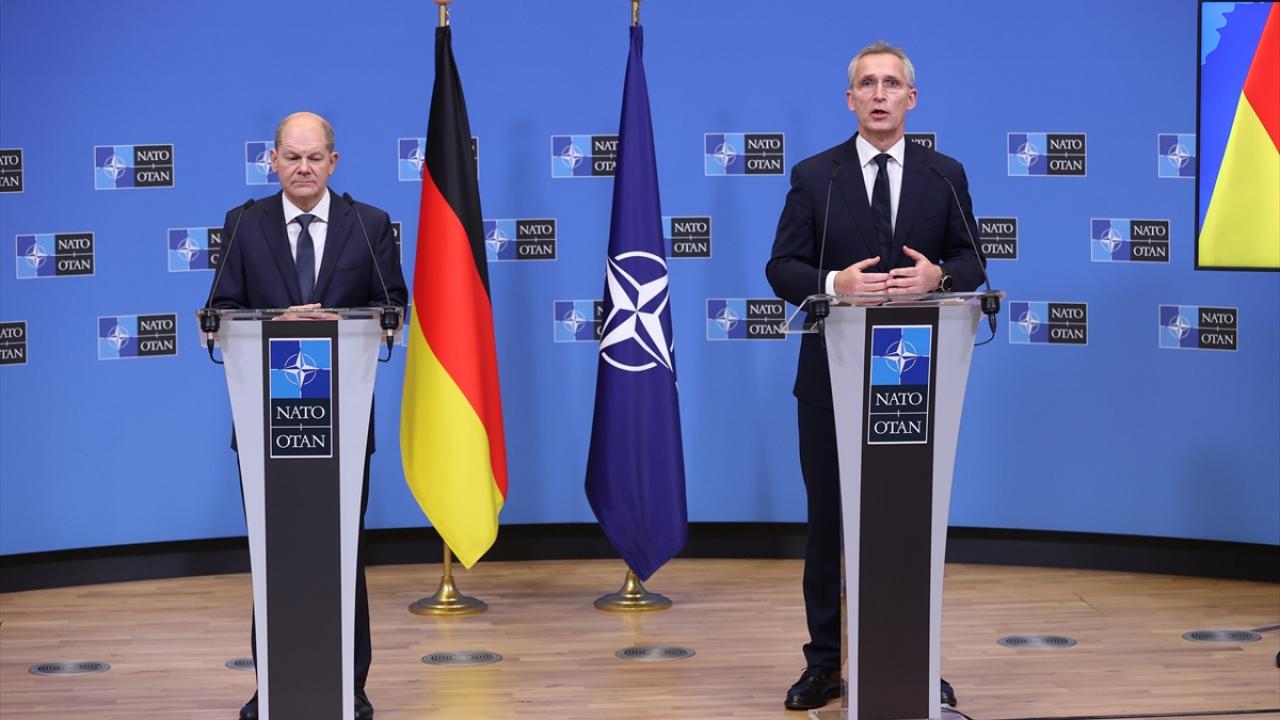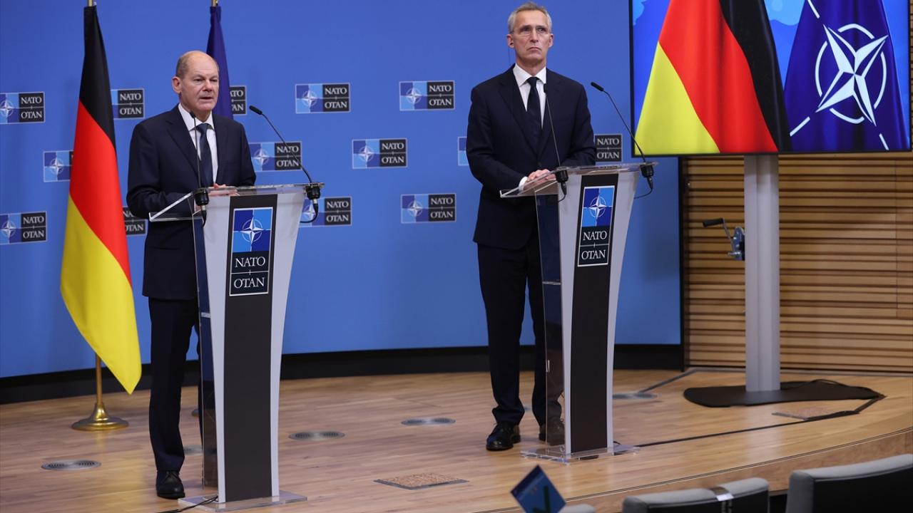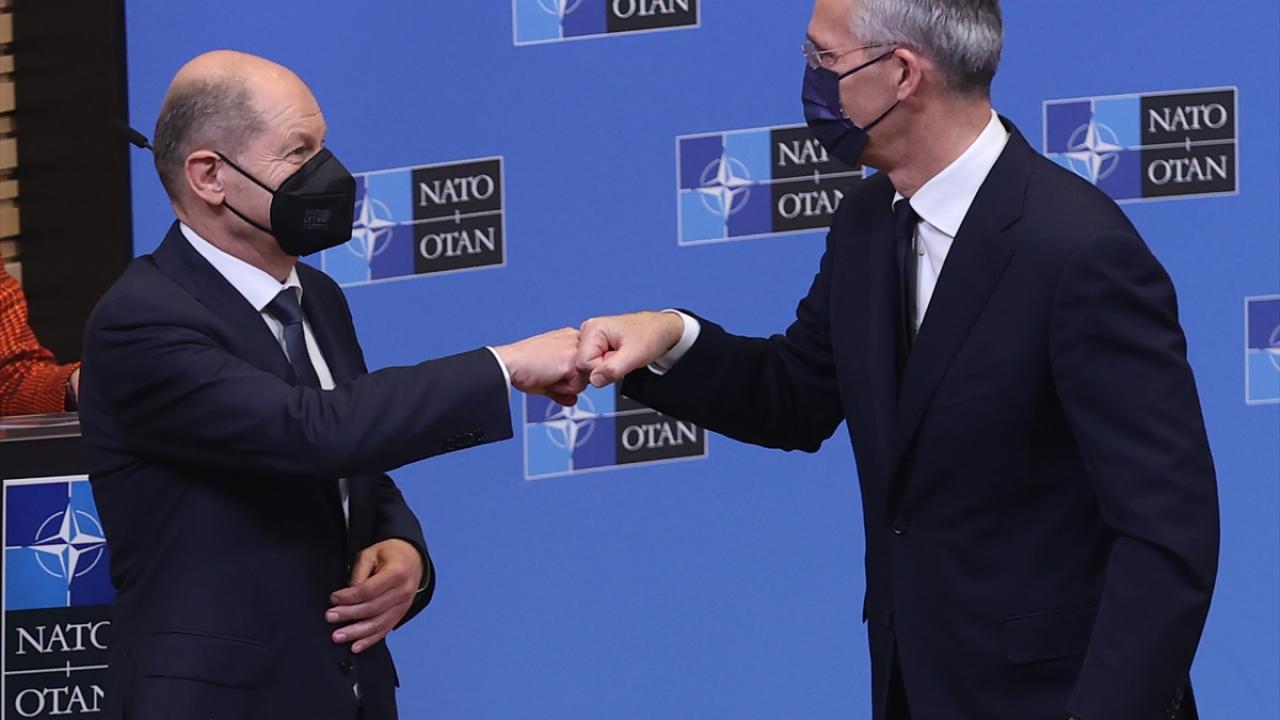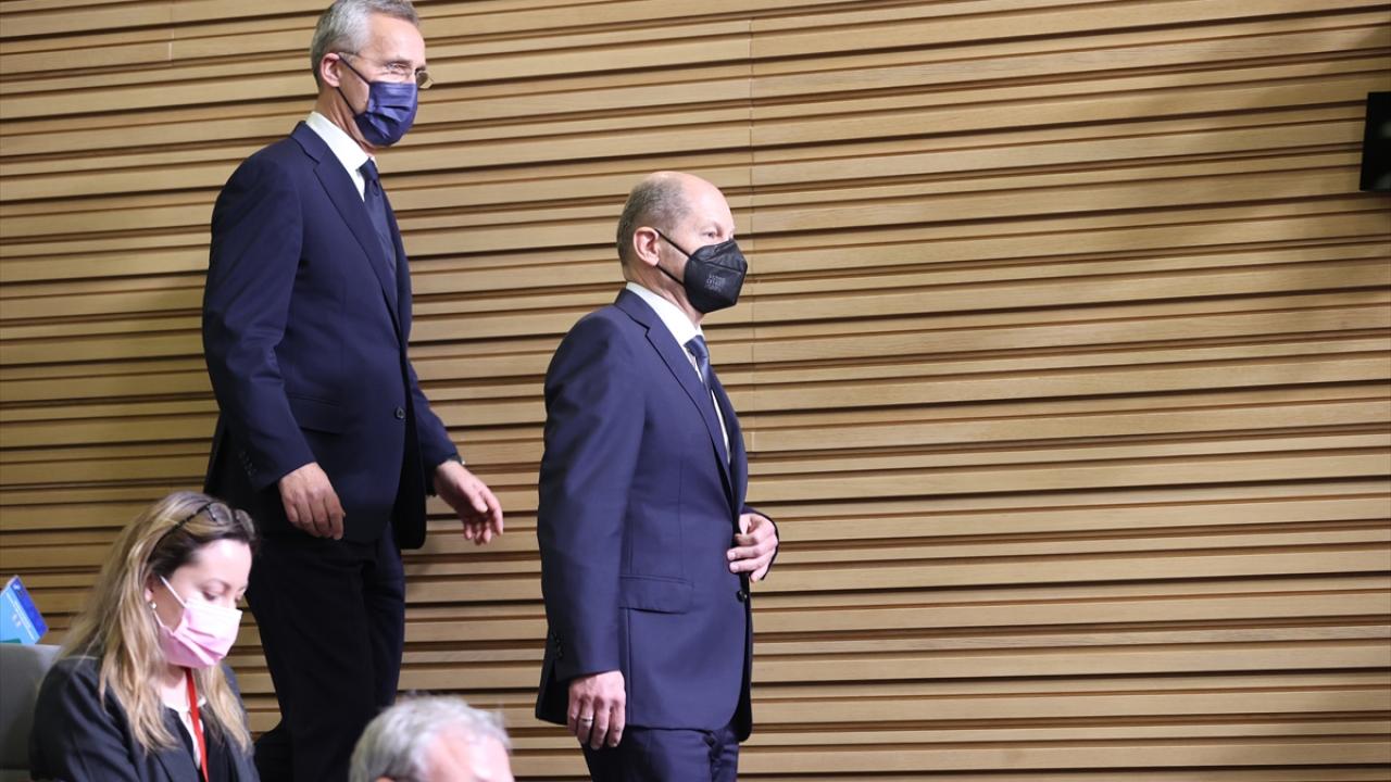 Almanya Başbakanı Scholz, Brüksel'de NATO Genel Sekreteri Stoltenberg ile bir araya geldi. Scholz, hükümetinin Almanya'nın NATO'ya taahhütlerine bağlı olduğunu ve bu çerçevede ortak güvenlik için çalışacağını söyledi.