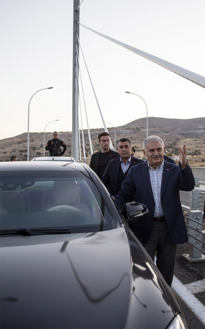 Başbakan Binali Yıldırım, Elazığ'da Keban Baraj Gölü üzerinde bulunan Karamağara Köprüsü'nü havadan helikopter ile inceledi. Daha sonra da makam aracına binerek köprü üzerinden geçti.