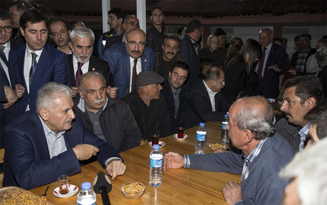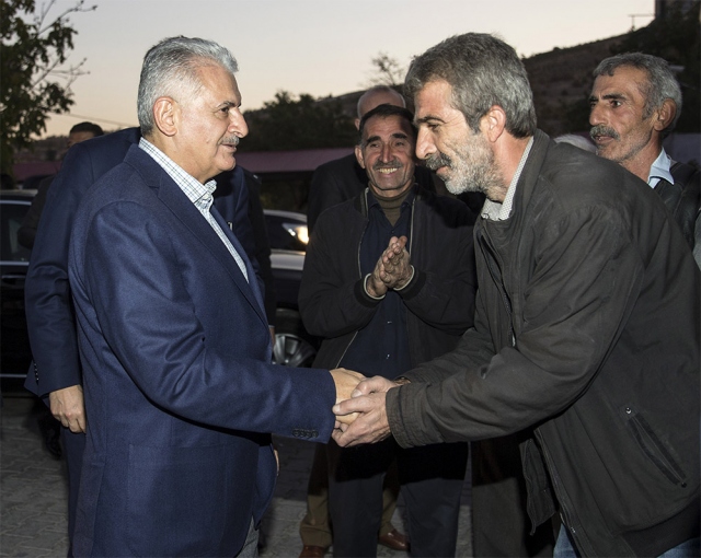 Başbakan Yıldırım, belediye önünde toplanan vatandaşlarla sohbet etti.