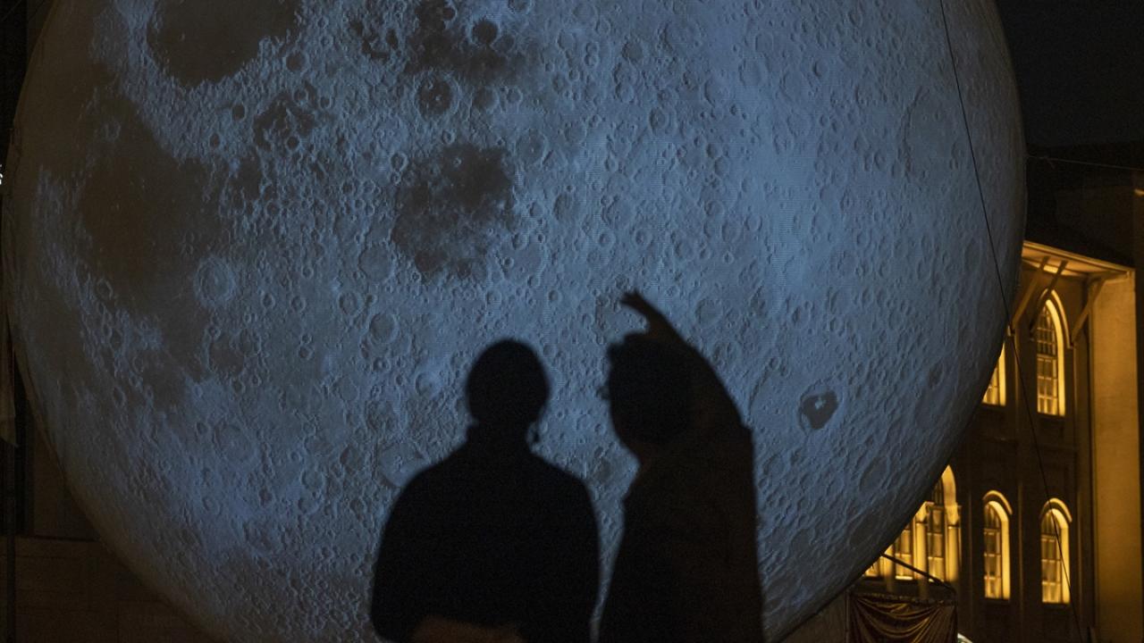Büyük ilgi gören Ay görselini önce şaşkınlıkla izleyenler daha sonra önünde çektirdikleri hatıra fotoğrafları ile bu anı ölümsüzleştiriyor.