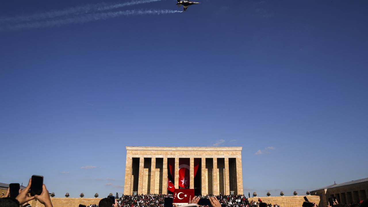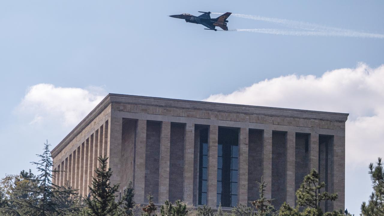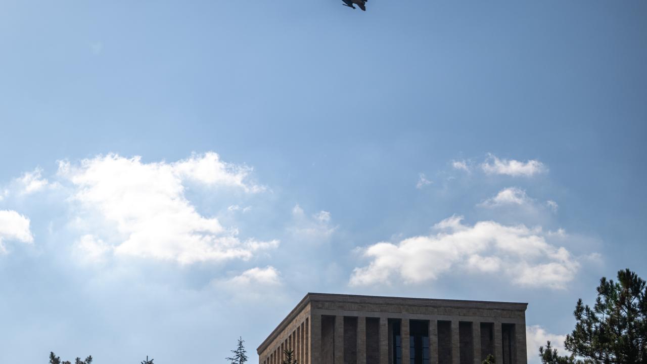 Türk Hava Kuvvetlerinin akrobasi timi SOLOTÜRK, Türkiye Cumhuriyeti'nin 102. kuruluş yıl dönümü dolayısıyla Ankara semalarında gösteri uçuşu gerçekleştirdi.