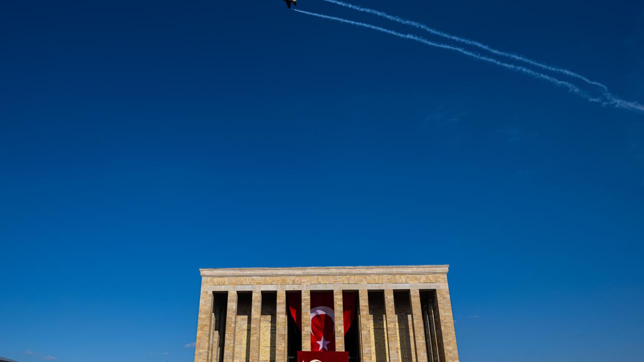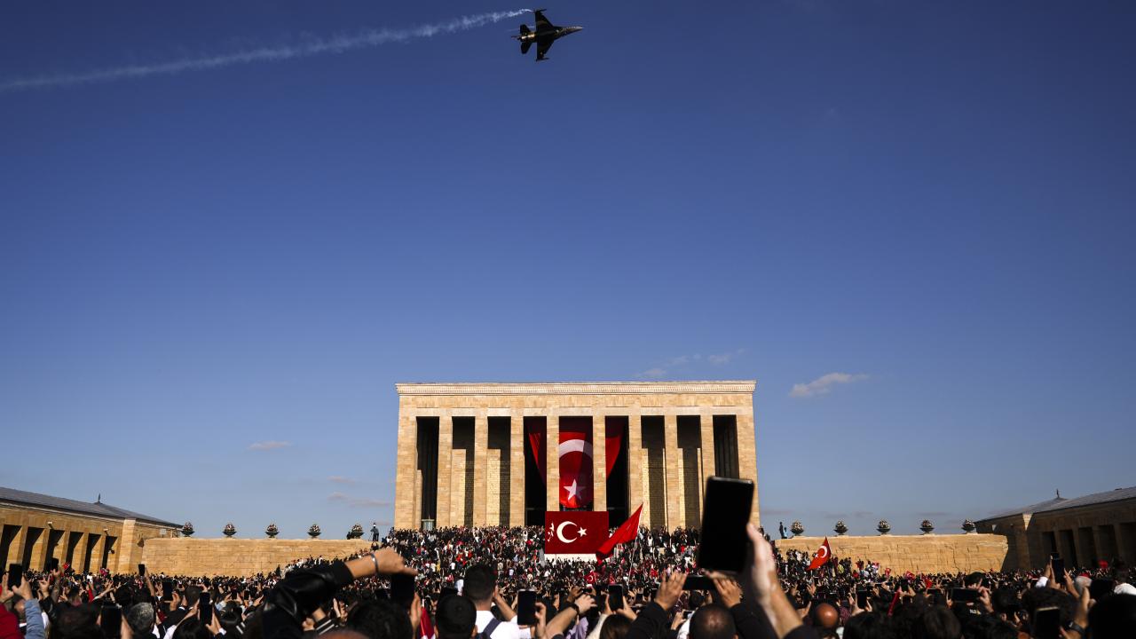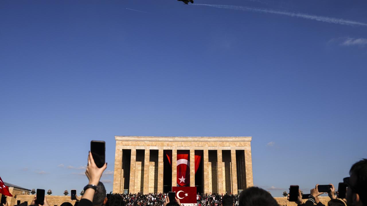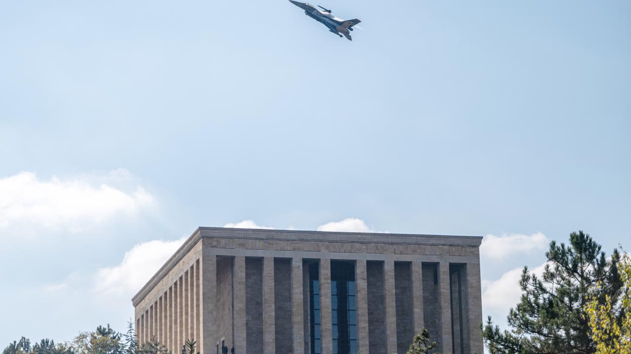 Türk Hava Kuvvetlerinin akrobasi timi SOLOTÜRK, Türkiye Cumhuriyeti'nin 102. kuruluş yıl dönümü dolayısıyla Ankara semalarında gösteri uçuşu gerçekleştirdi.