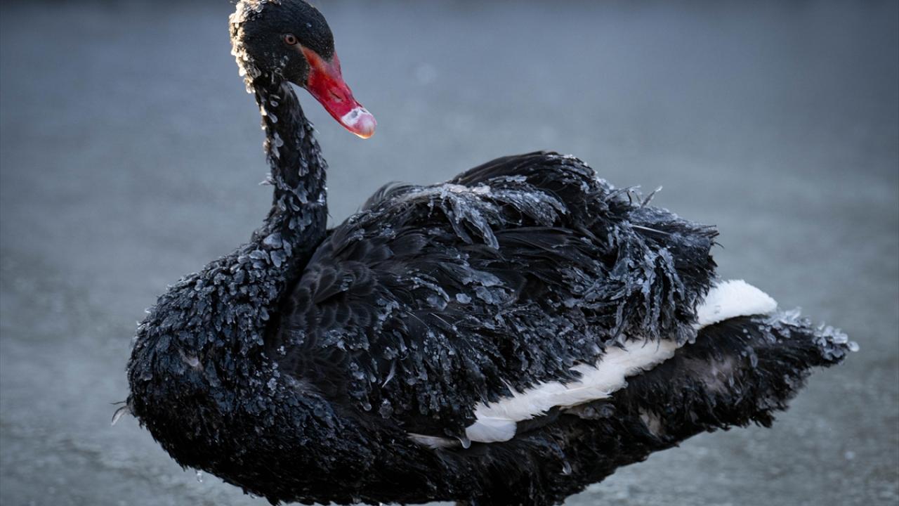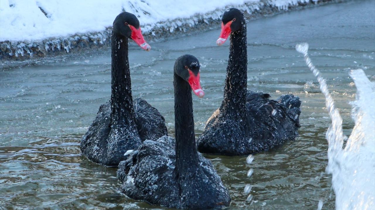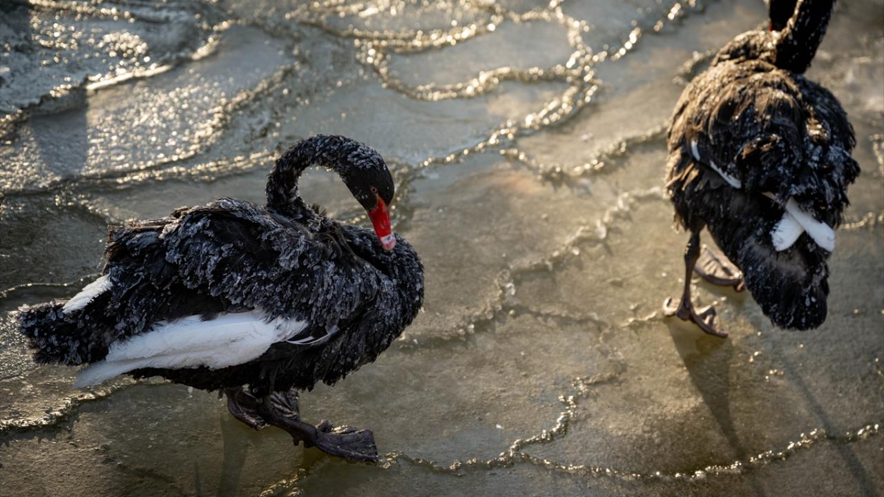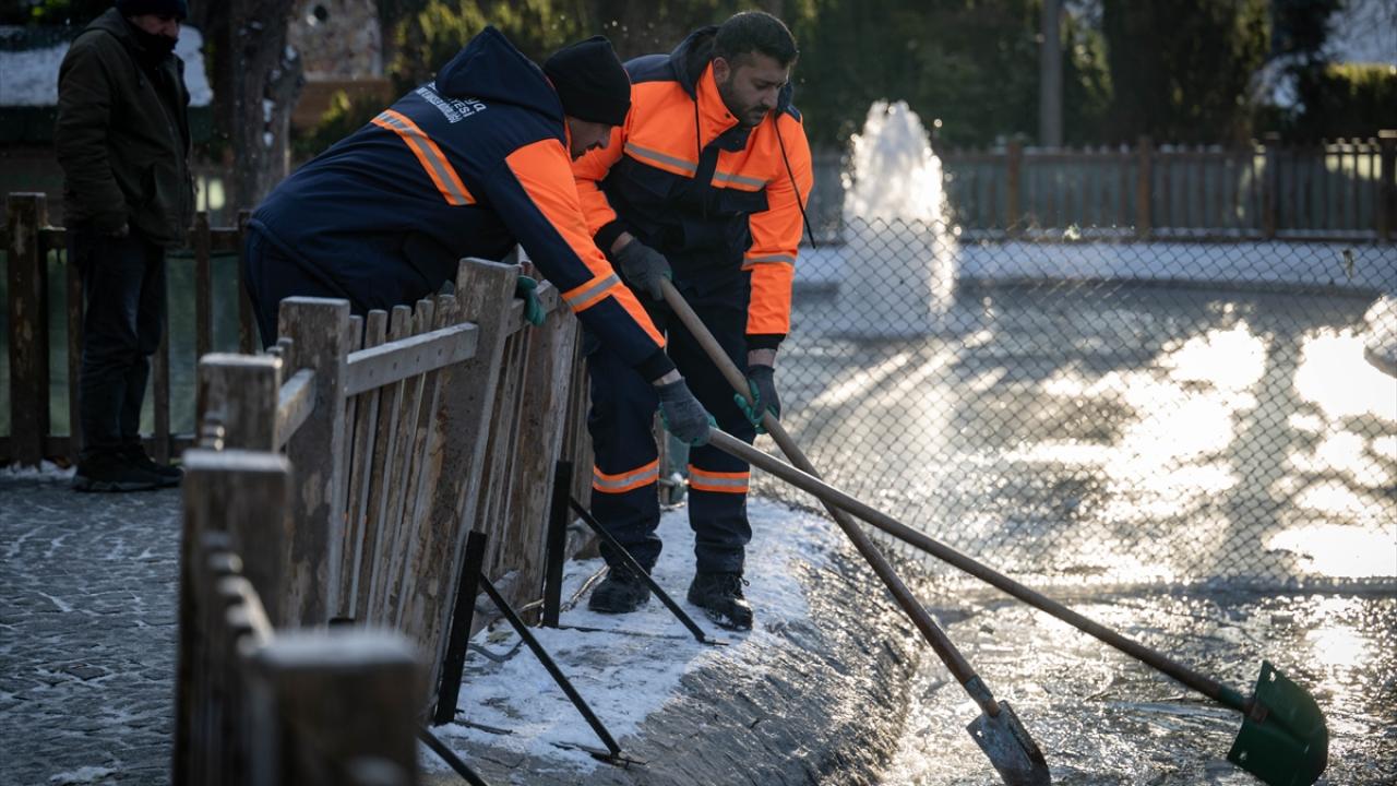 Ankara'da etkili olan kar yağışının ardından hava sıcaklığı sıfırın altında 11 dereceye kadar düşerken kentin simge noktalarından Kuğulu Park'ta bulunan kuğuların yaşadığı havuzun yüzeyi dondu.