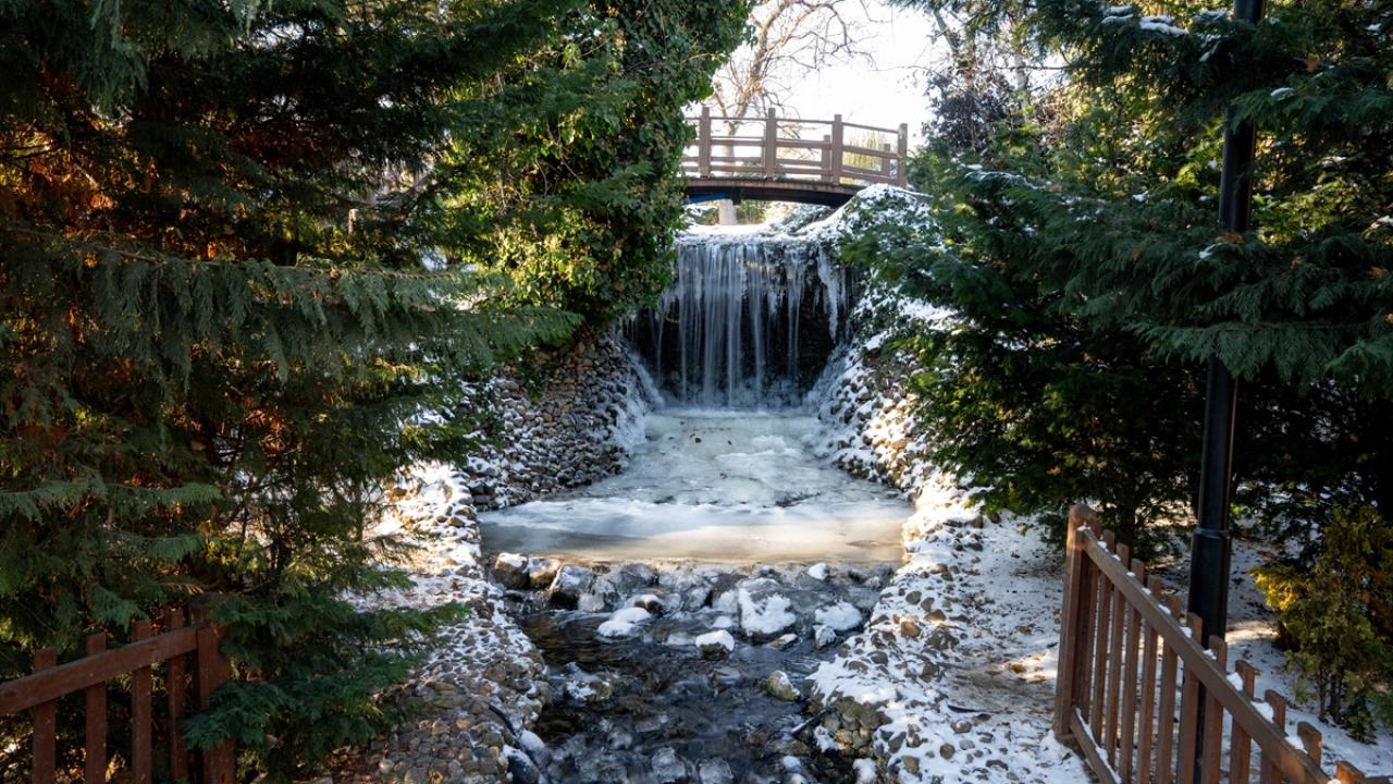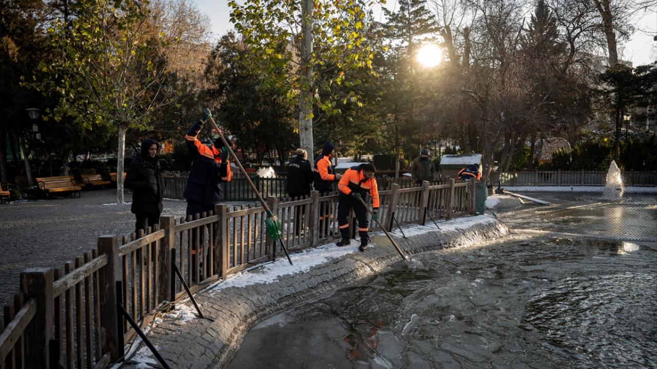 Başkentin simgelerinden Kuğulu Park'taki havuzun yüzeyi buz tuttu