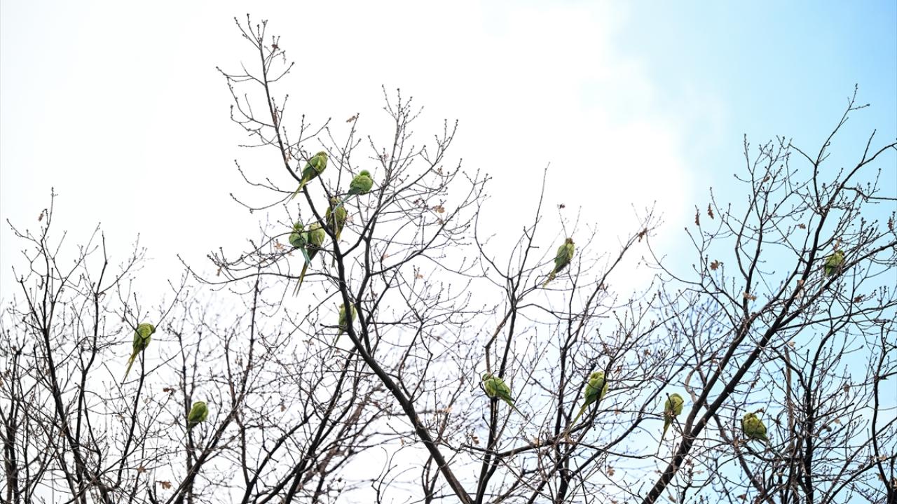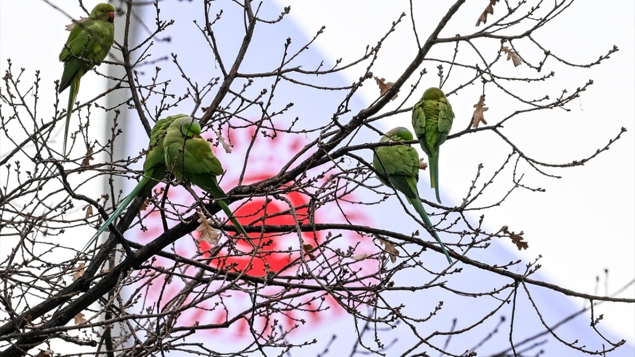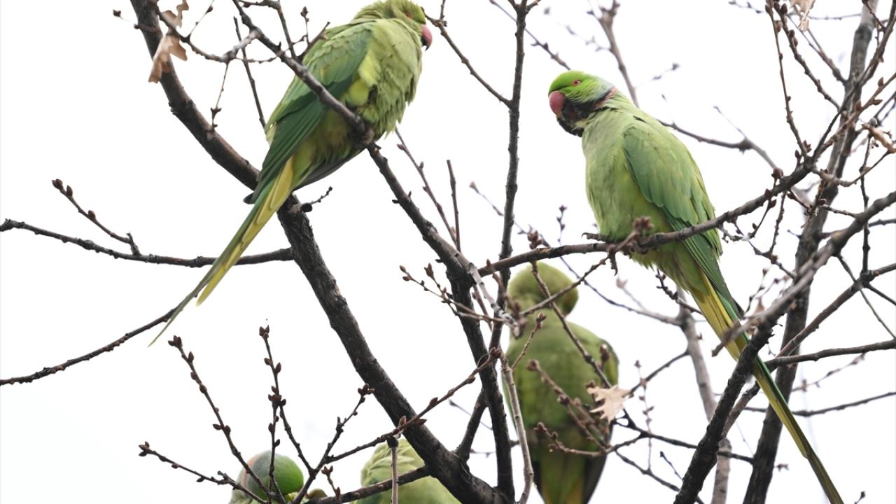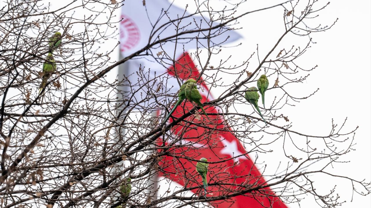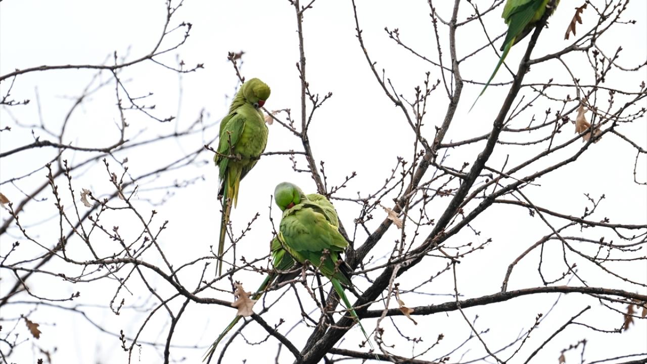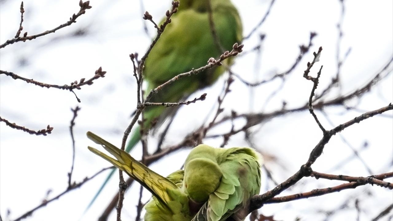 Doğal yaşam alanları Afrika ile Güney Asya olan ve anavatanları dışında popülasyonunu artırarak yerleşik bir tür haline gelen yeşil papağanlar (Psittacula Krameri), TBMM Bahçesi'nde görüntülendi.