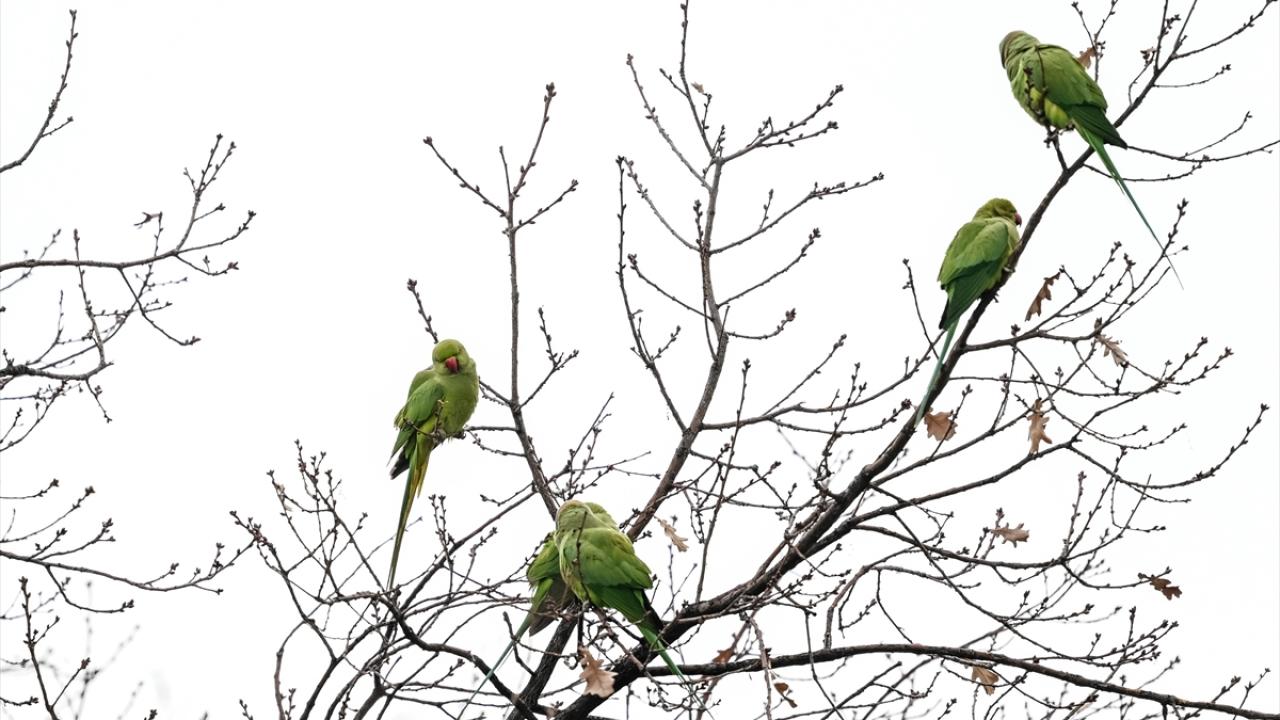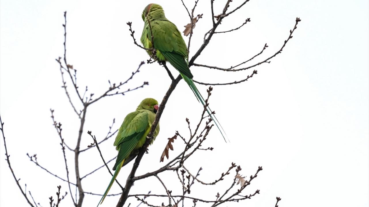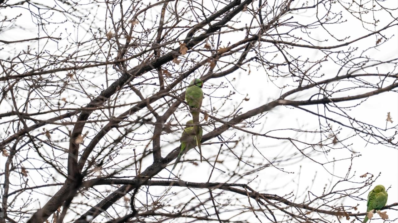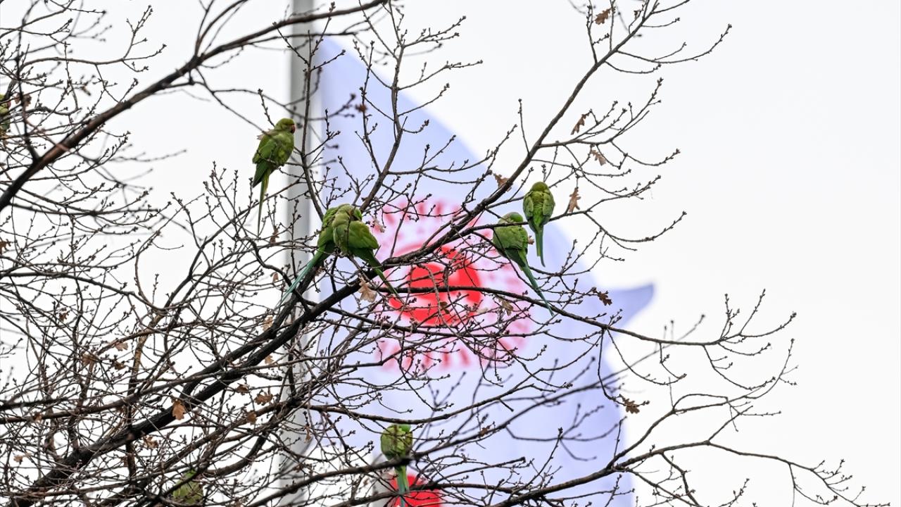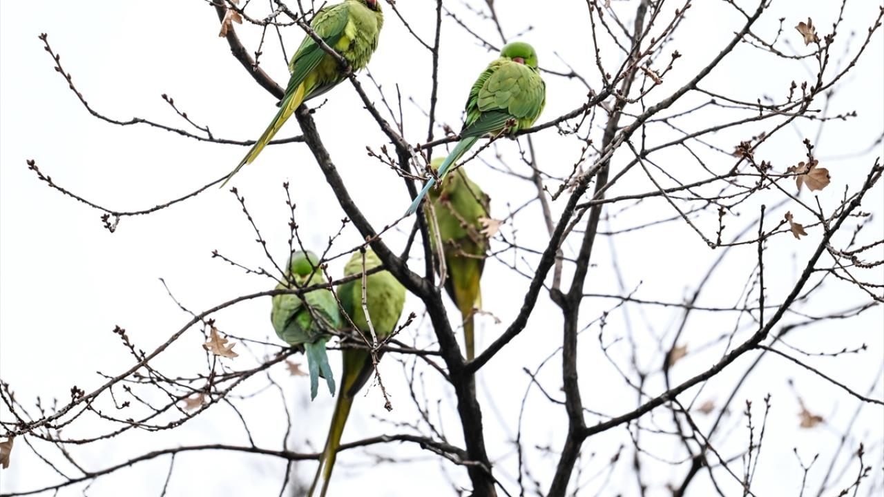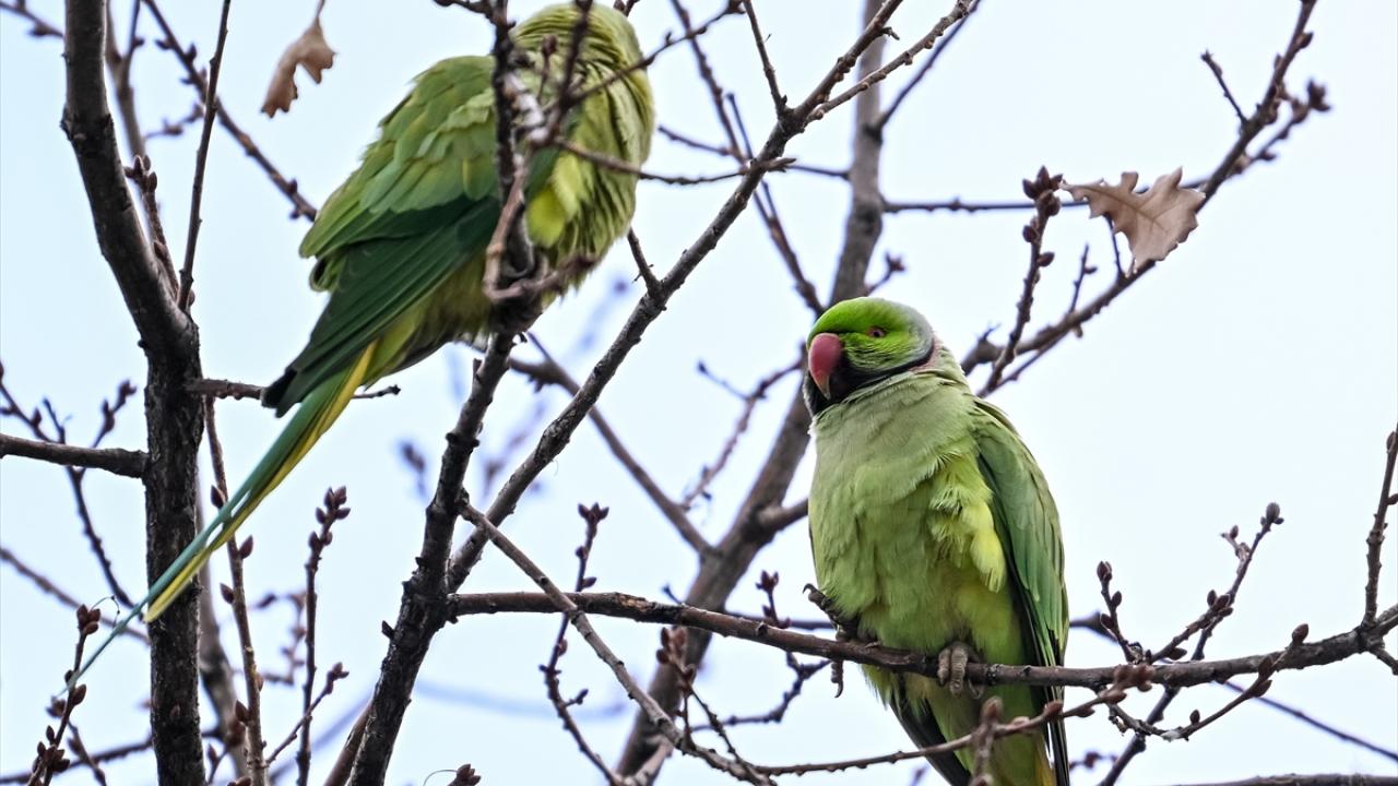 Doğal yaşam alanları Afrika ile Güney Asya olan ve anavatanları dışında popülasyonunu artırarak yerleşik bir tür haline gelen yeşil papağanlar (Psittacula Krameri), TBMM Bahçesi'nde görüntülendi.