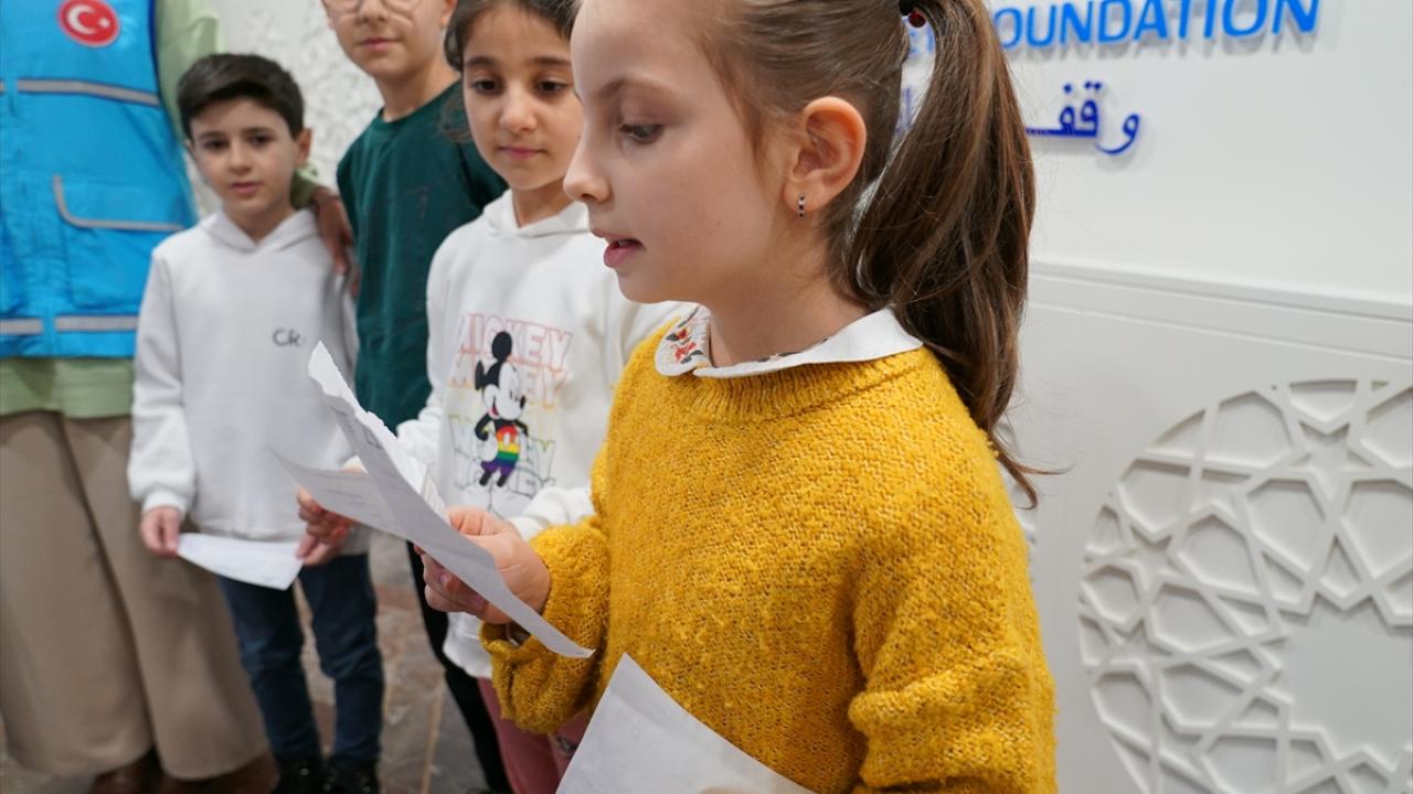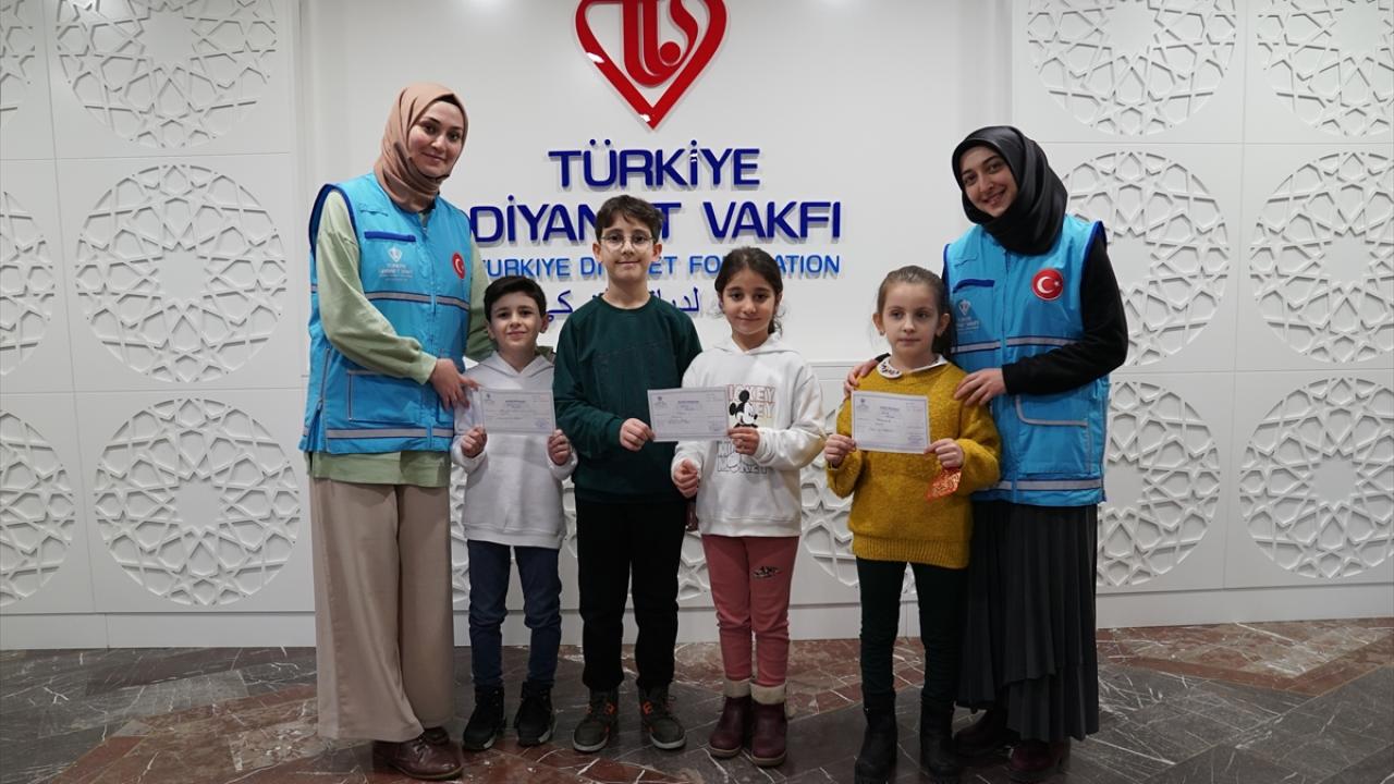Türkiye Diyanet Vakfı Mütevelli Heyeti 2. Başkanı İhsan Açık, bağışta bulunan çocukları karşıladı, örnek davranışlarından dolayı çocuklara teşekkürlerini iletti.