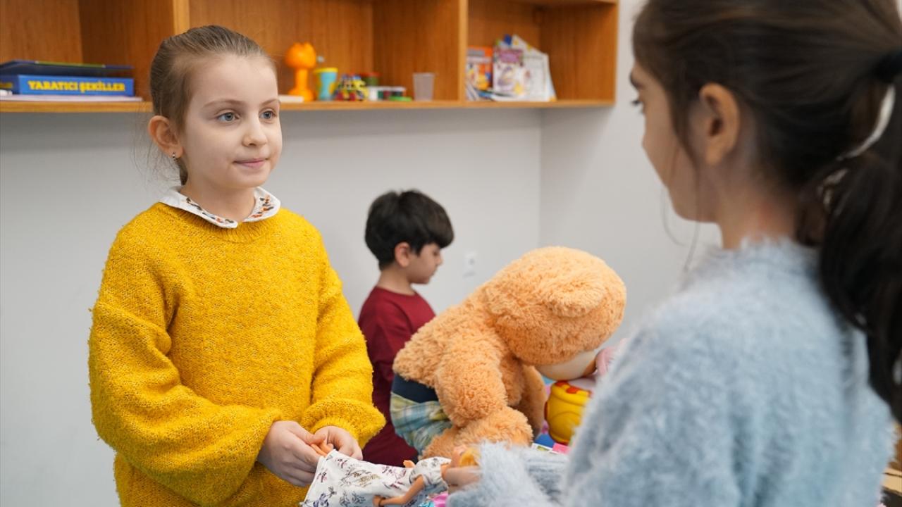 Ankaralı çocuklar da merkeze gelerek, depremzede yaşıtlarını ziyaret etti.