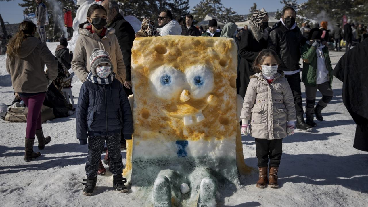 Karın eğlenceye dönüştüğü festivalde, Gazi Üniversitesi Güzel Sanatlar Fakültesi ve Heykeltıraş Bölümü öğrencilerinin bir hafta süren gönüllü çalışmasıyla tamamlanan kardan heykeller dikkati çekti.