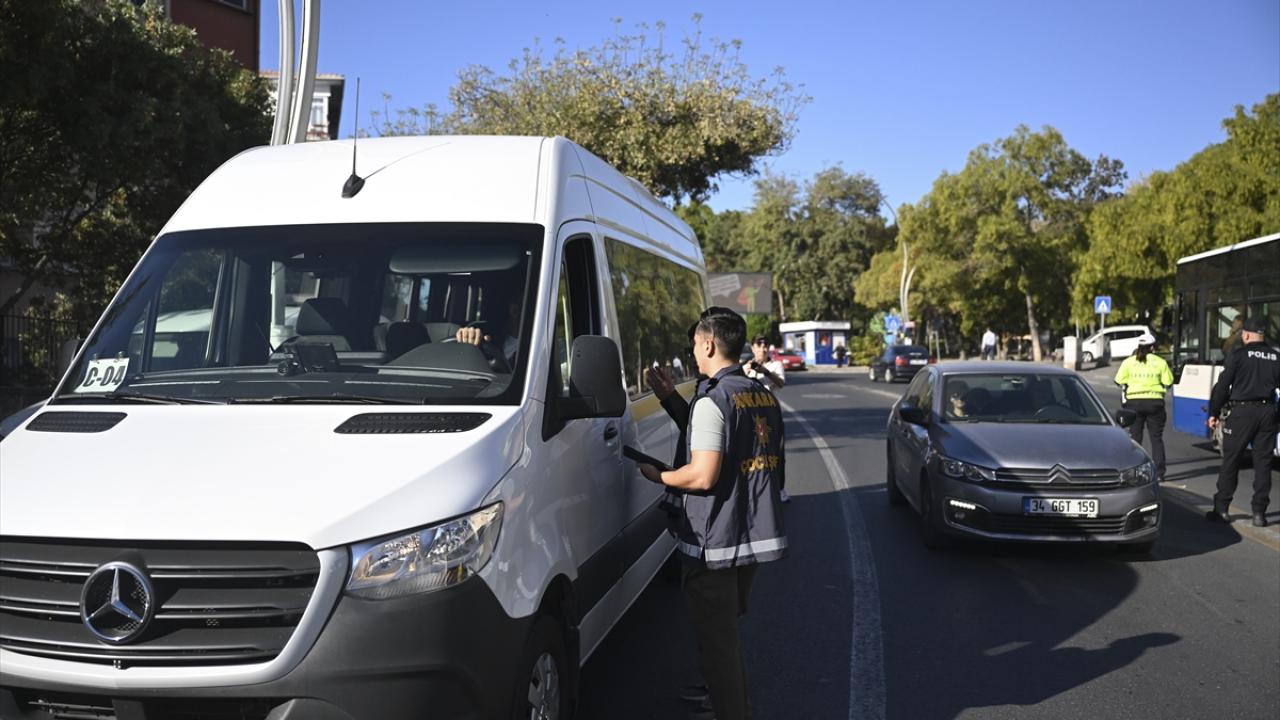 Ekipler, okulun önünden geçen okul servis araçları ve taşıtları da durdurarak, sürücülerin ve araçların belgelerini kontrol etti.