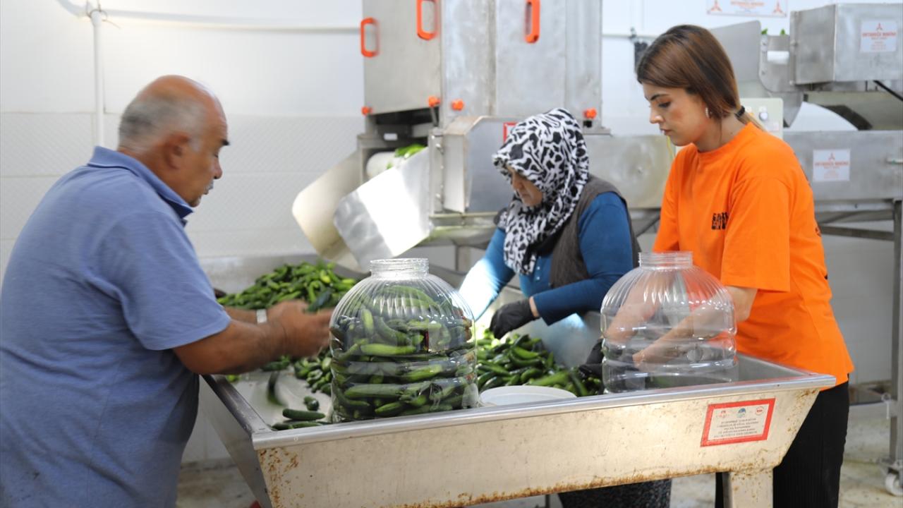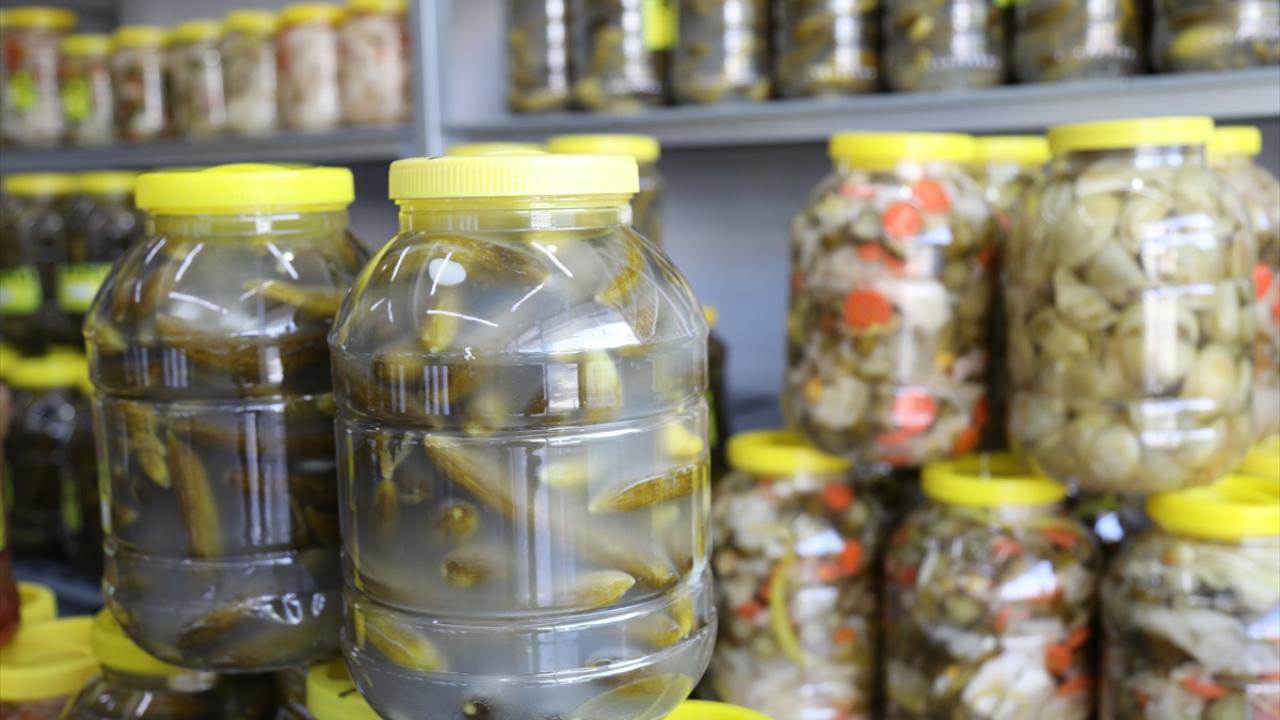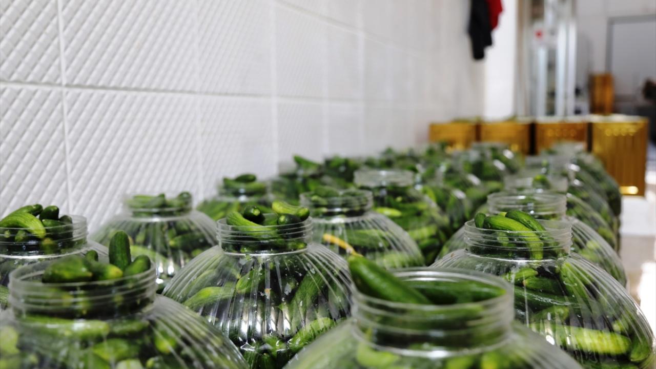Turşu imalatı yapan firma çalışanlarından Aliye İmdat, doğal ev tipi Çubuk turşusu ürettiklerini, kalibrasyondan gelen salatalıkları yıkama ve iğnelemenin ardından bidon ve tenekelere doldurduklarını anlattı.