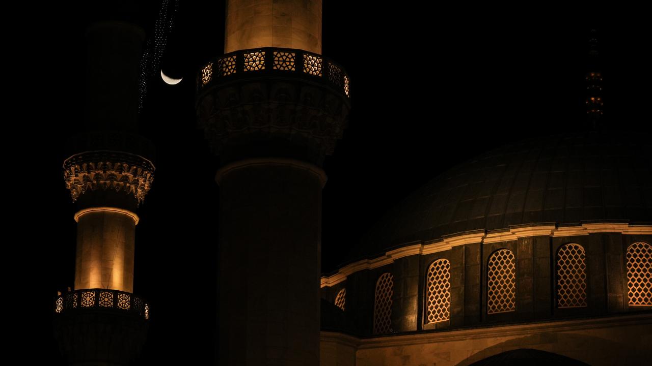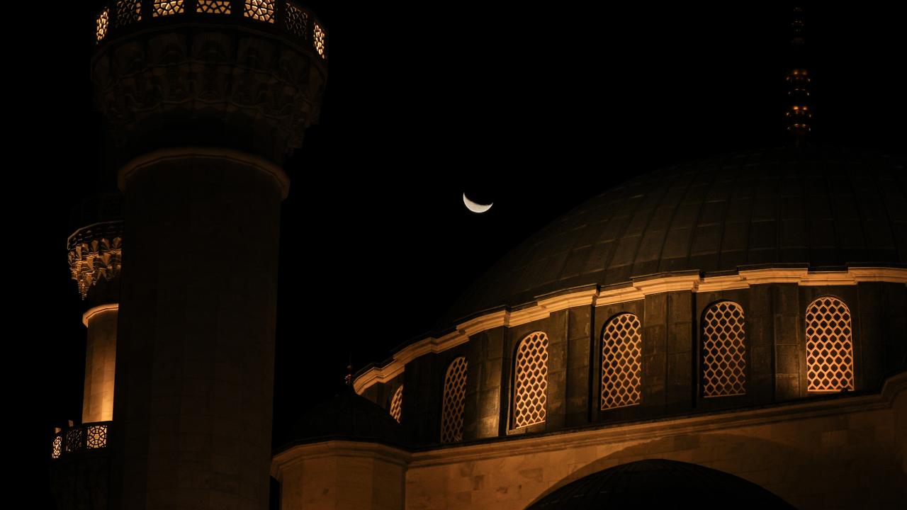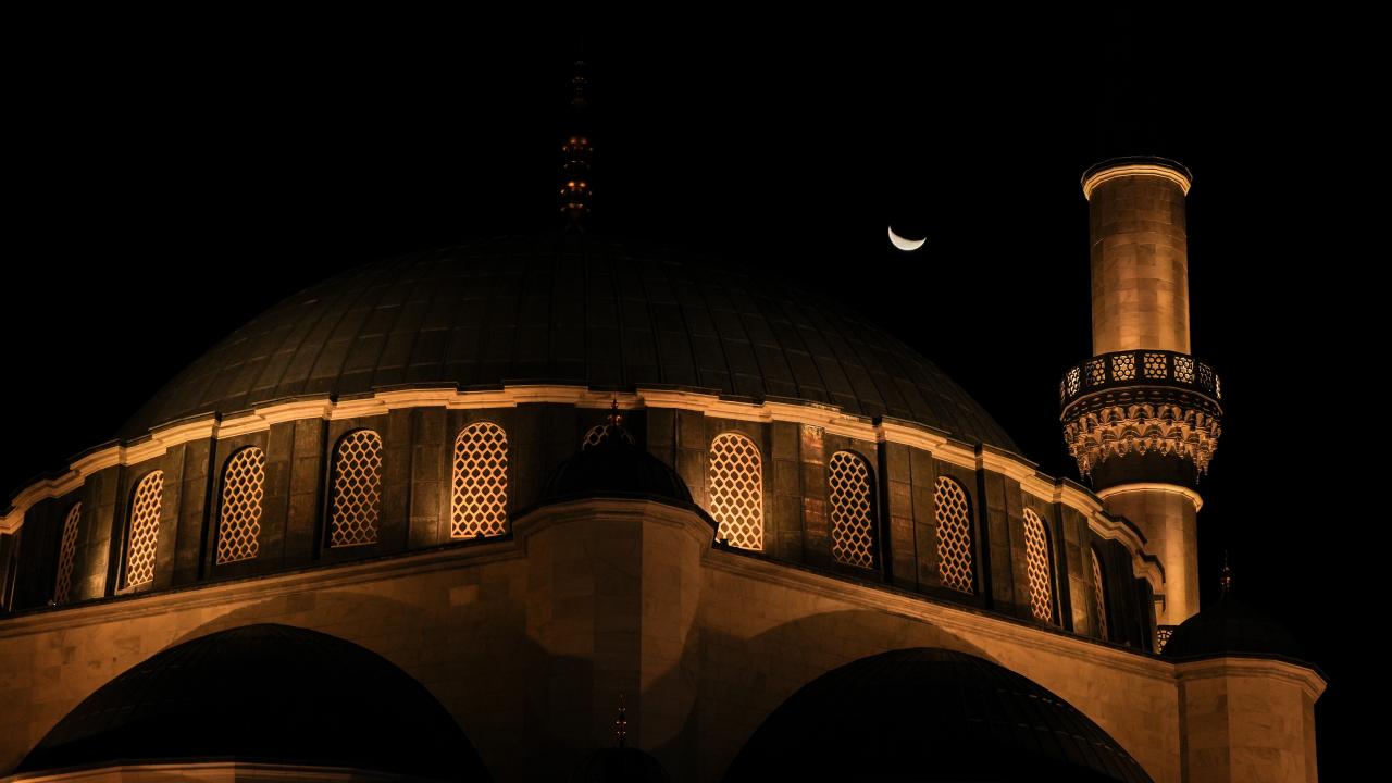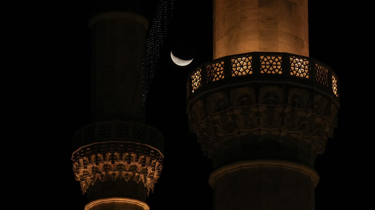 Ankara'da gökyüzünde beliren hilal, Melike Hatun Camii ile güzel görüntüler oluşturdu.