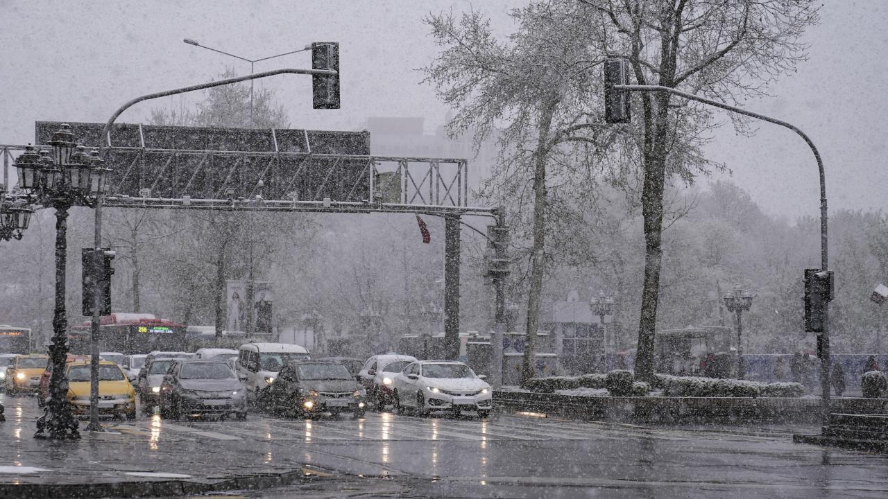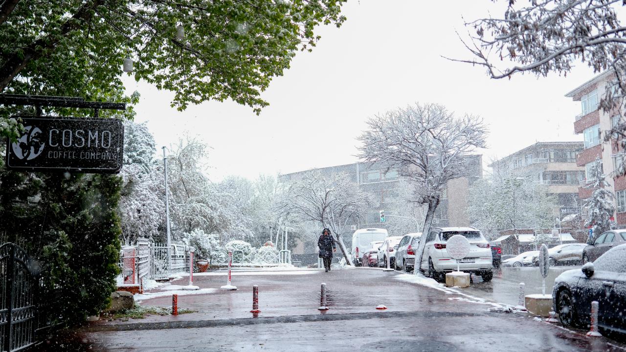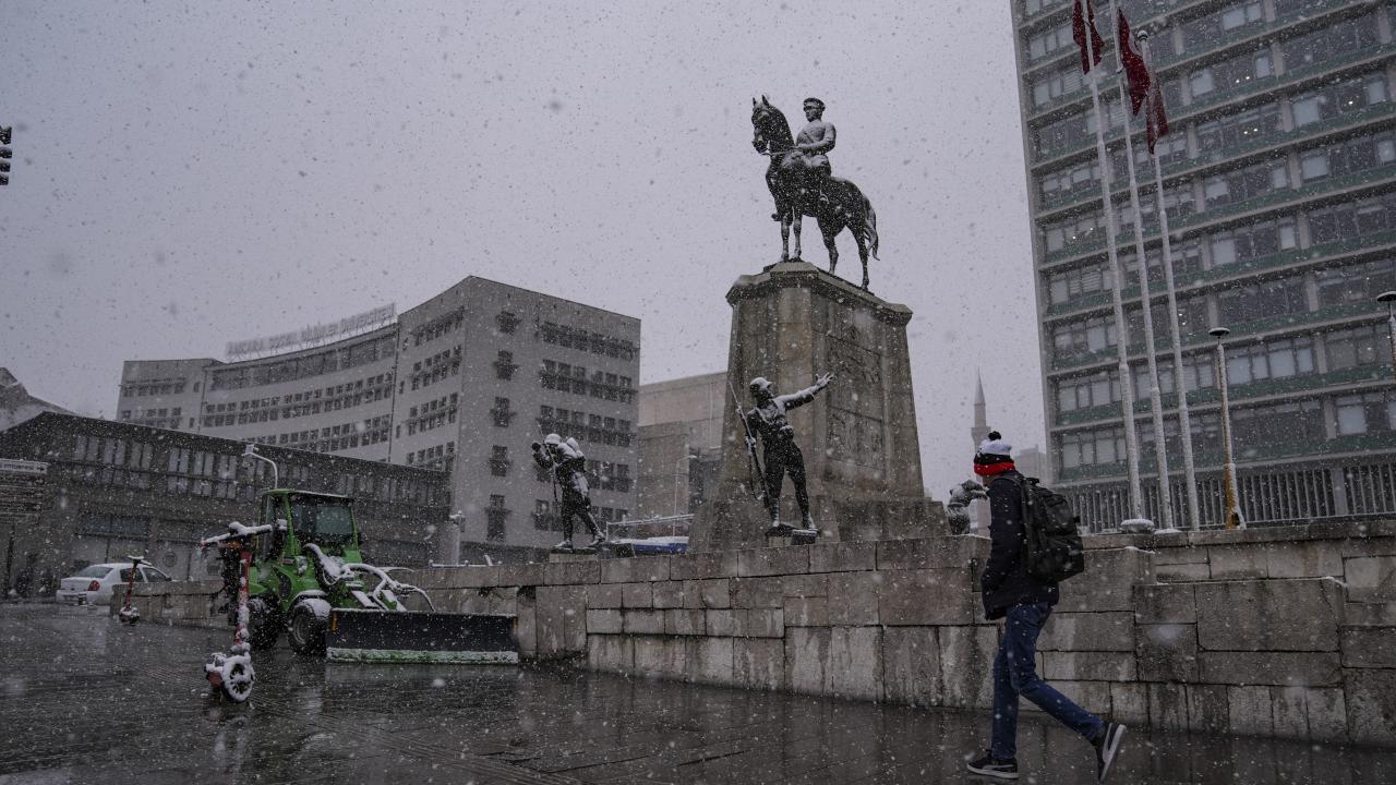 Ankara'da etkisini gösteren kar yağışının ardından Atakule ve çevresi beyaza büründü.