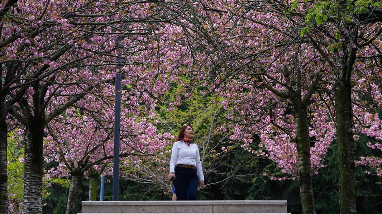 Ankara'da baharın gelmesiyle Dikmen Vadisinde çiçek açan Japon Kirazı (Sakura) ağaçları, güzel görüntüler oluşturdu.