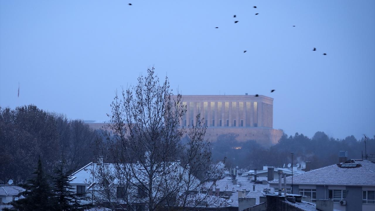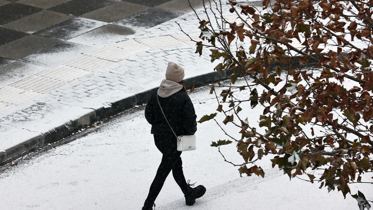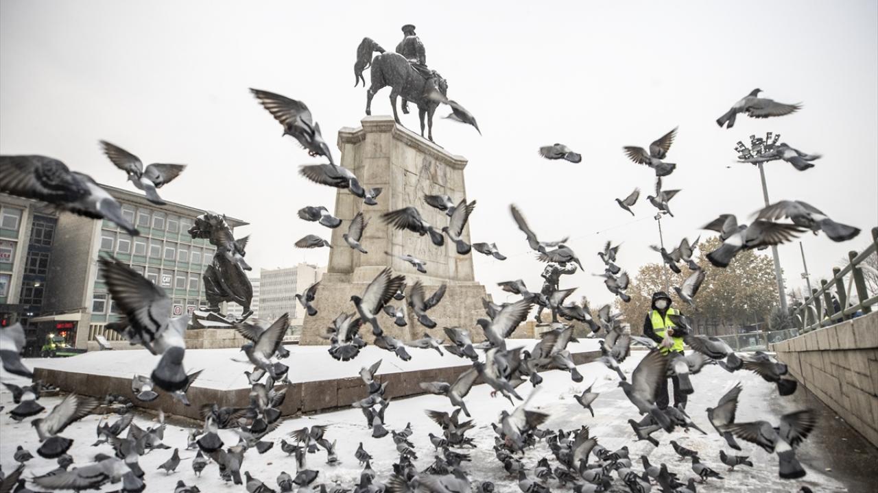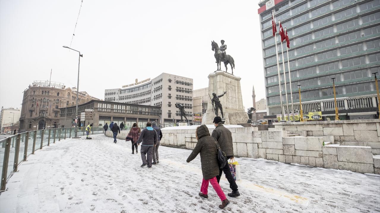 Ankara`da sabah saatlerinde başlayan kar yağışı Ulus Meydanı ve çevresini beyaza bürüdü.