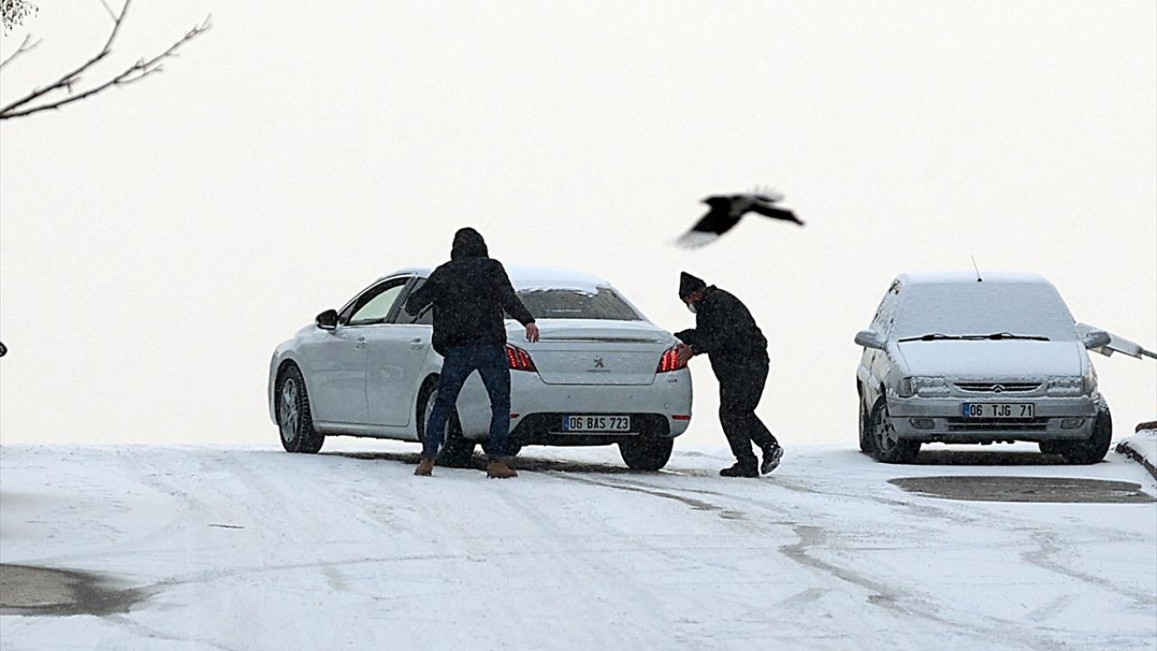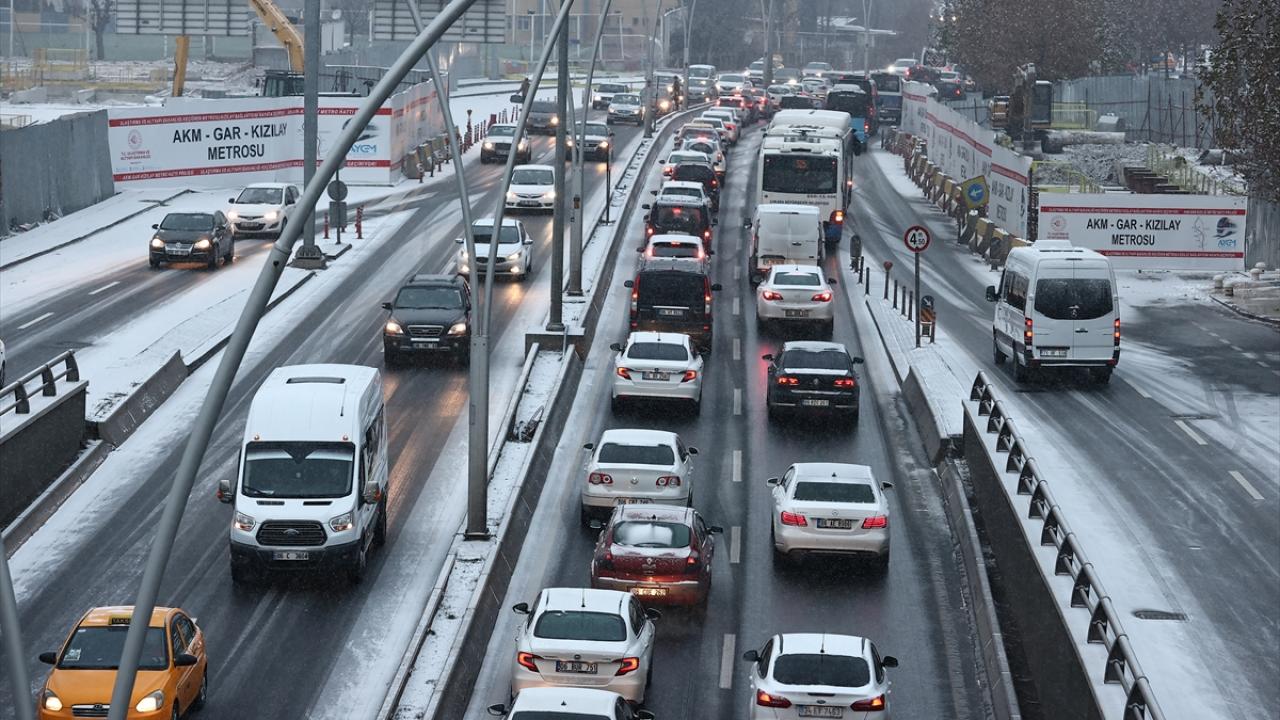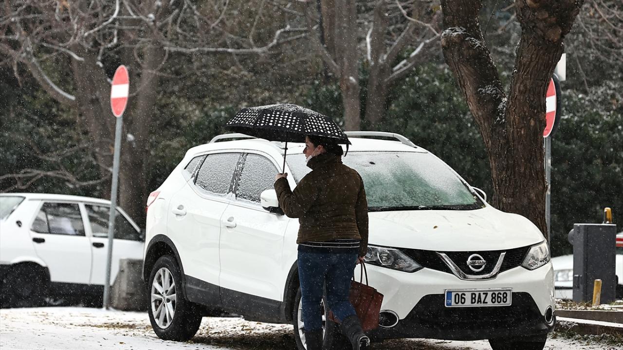 Ankara'da sabah saatlerinde başlayan kar yağışı kenti beyaza bürüdü.