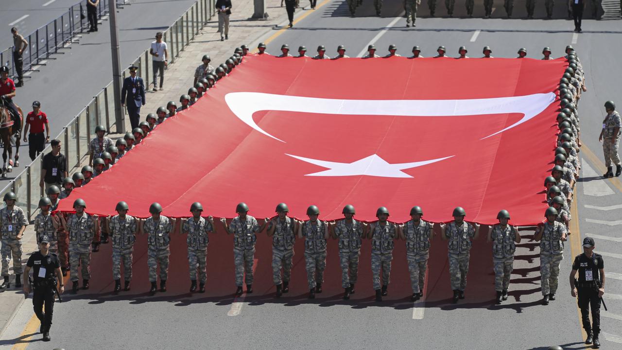 Geçit töreni, yaklaşık 4 kilometrelik yürüyüşün ardından Ulus`taki eski Meclis önünde sona erdi.