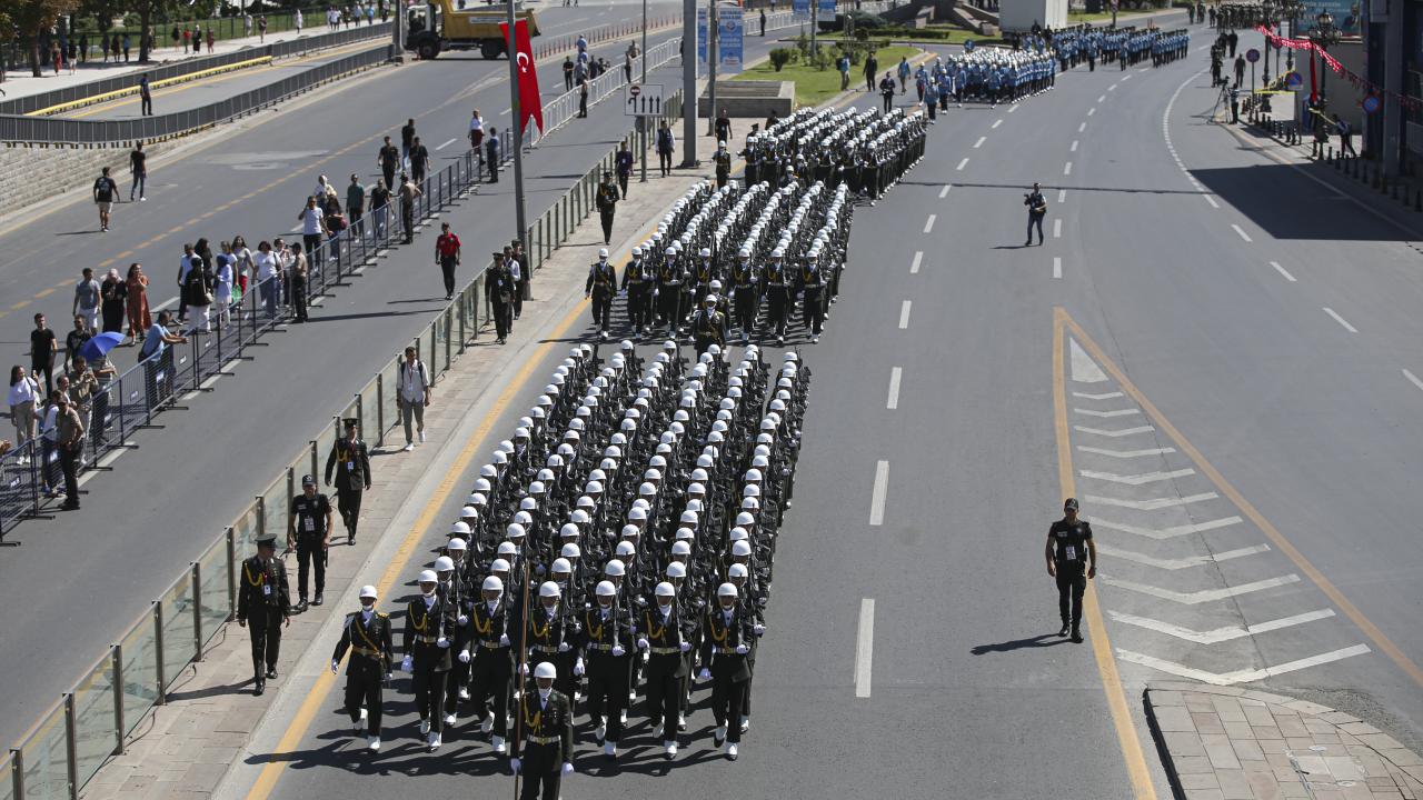 Başkentte, 30 Ağustos Zafer Bayramı'nın 100. yıl dönümü kutlamaları kapsamında, TBMM önünden Ulus'taki eski Meclis binasına kadar resmi geçit töreni yapıldı.