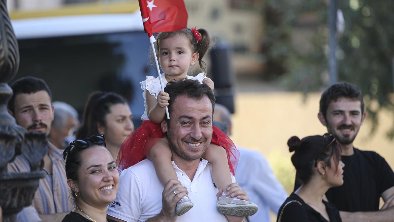 Atatürk Bulvarı`nda toplanan vatandaşlar, ellerindeki bayraklarla kortejdeki asker ve polislere sevgi gösterilerinde bulundu, bandonun seslendirdiği marşlara eşlik etti.