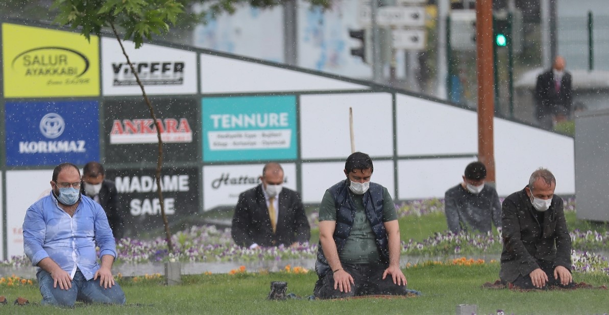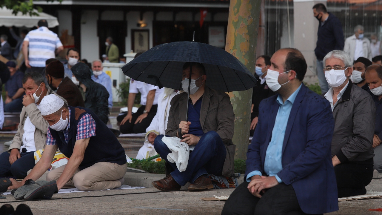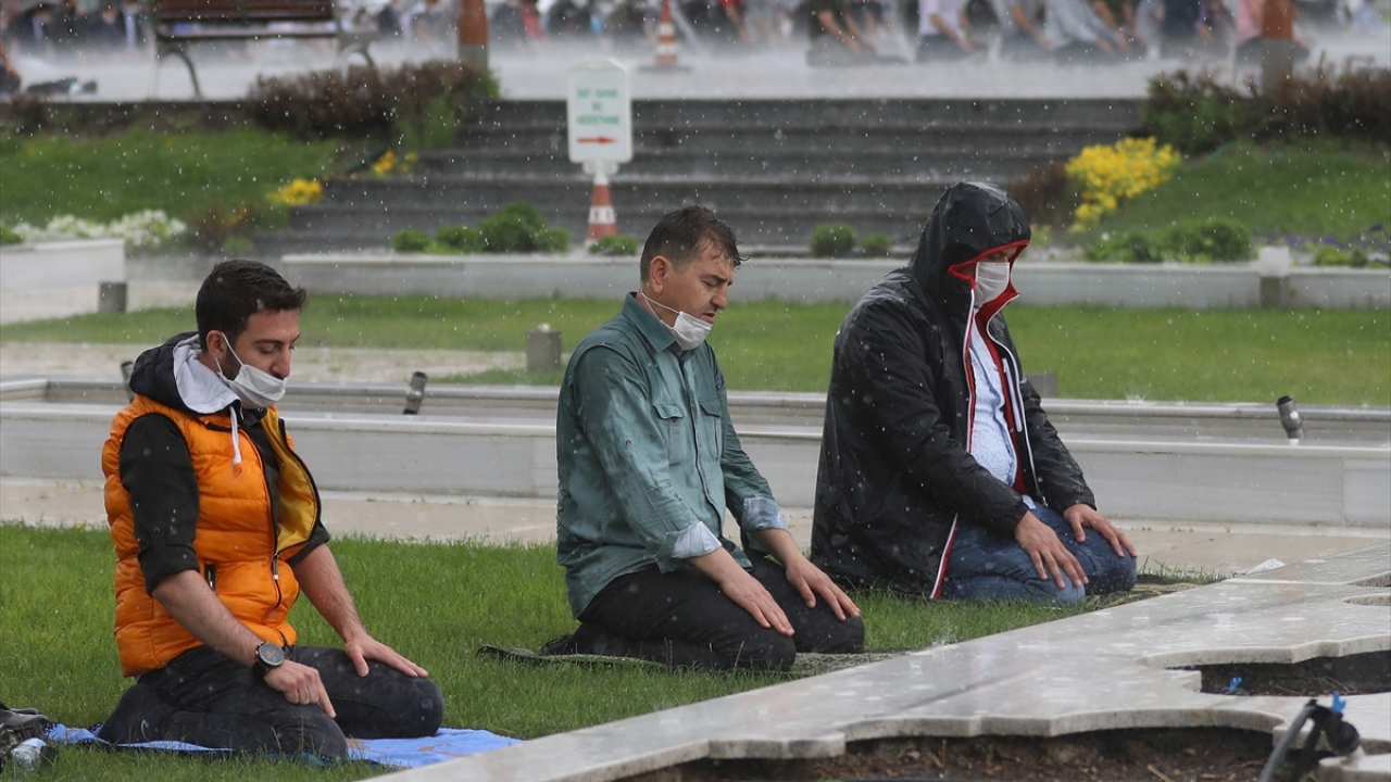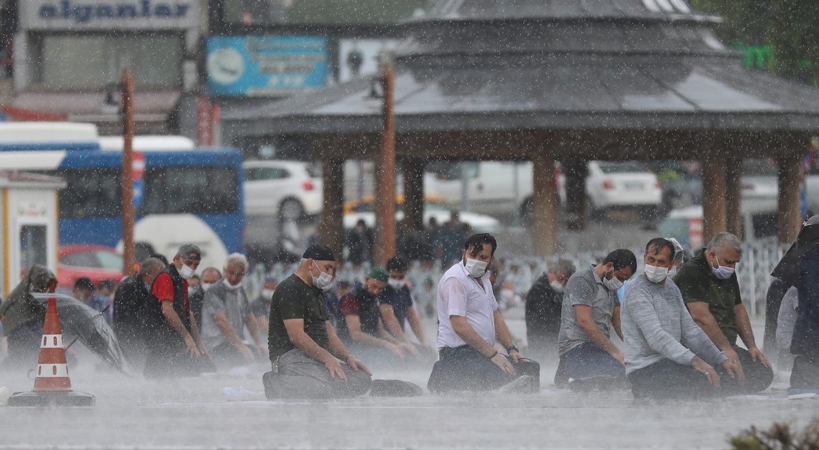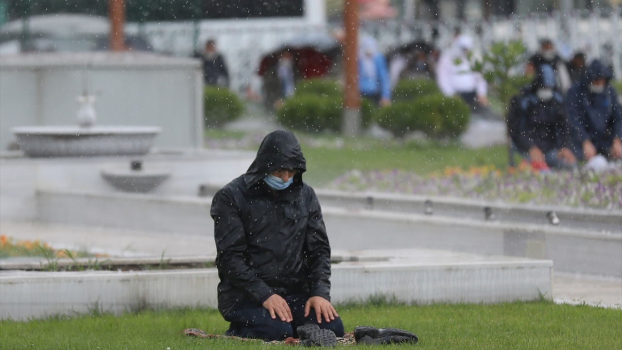 Ankara'da cuma namazı, yeni tip koronavirüs tedbirleri ile kılındı. Vatandaşlar cuma namazını, öğle saatlerinde etkili olan sağanak yağmur altında kıldı.
