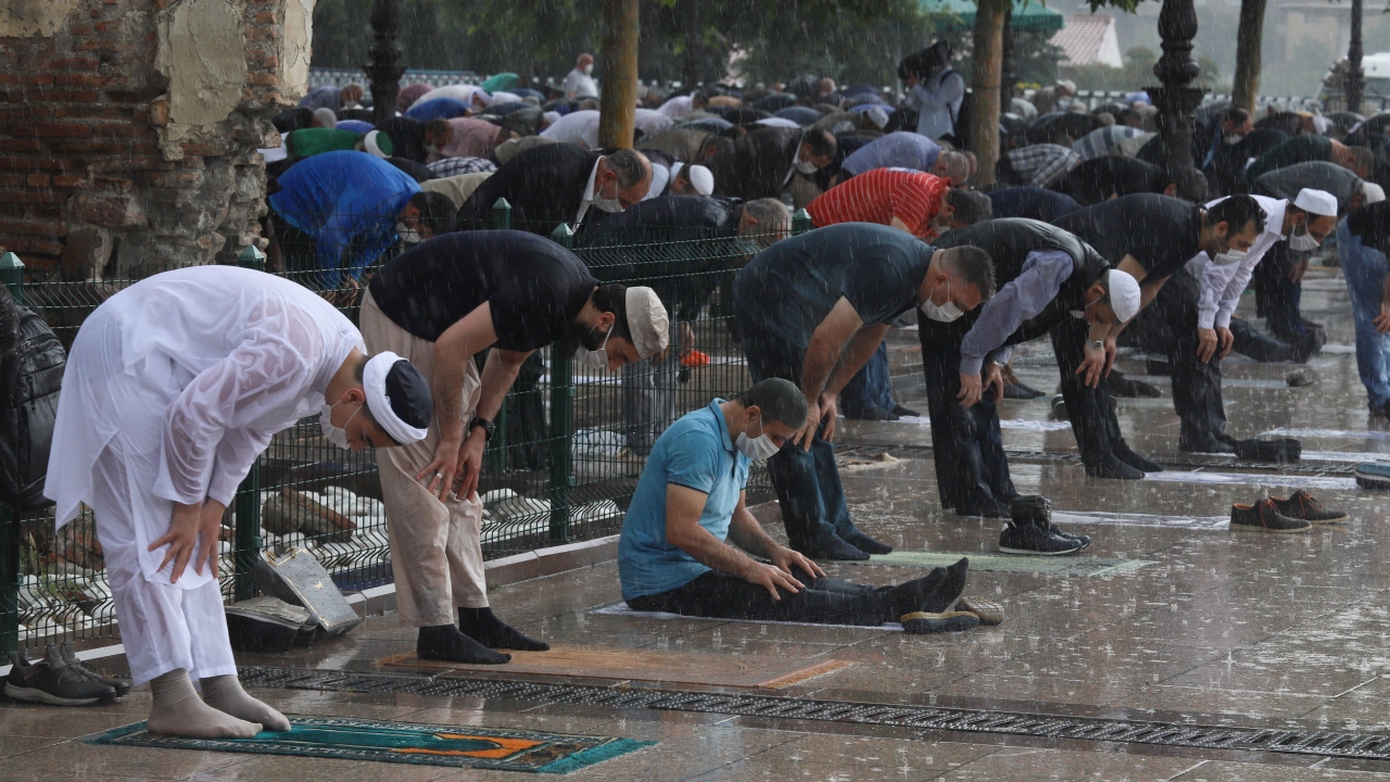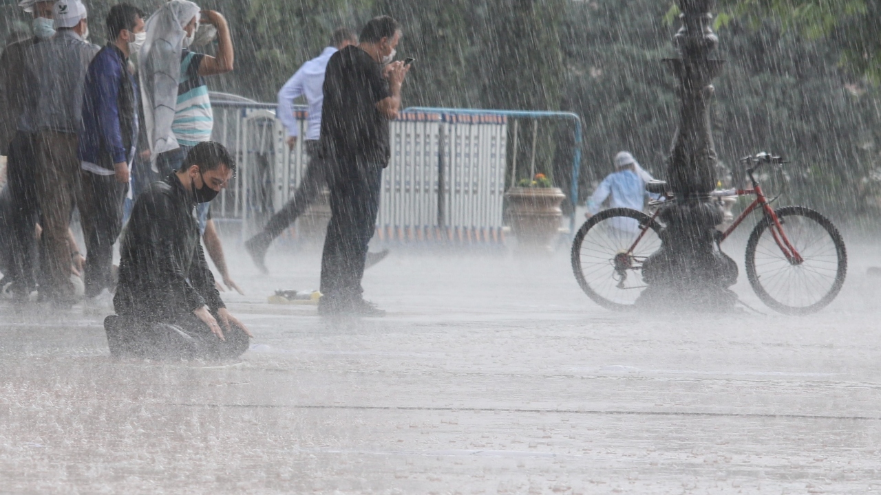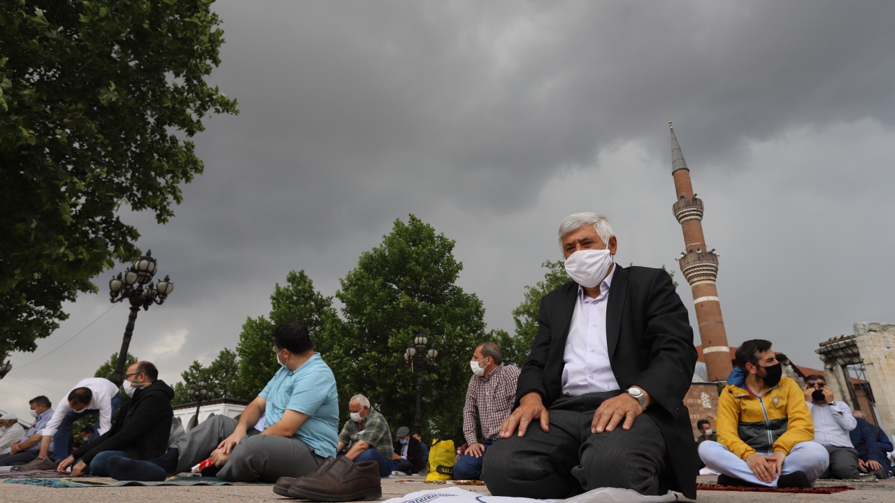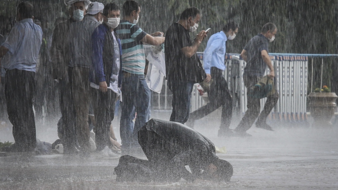 Ankara'da cuma namazı, yeni tip koronavirüs tedbirleri ile kılındı. Vatandaşlar cuma namazını, öğle saatlerinde etkili olan sağanak yağmur altında kıldı.